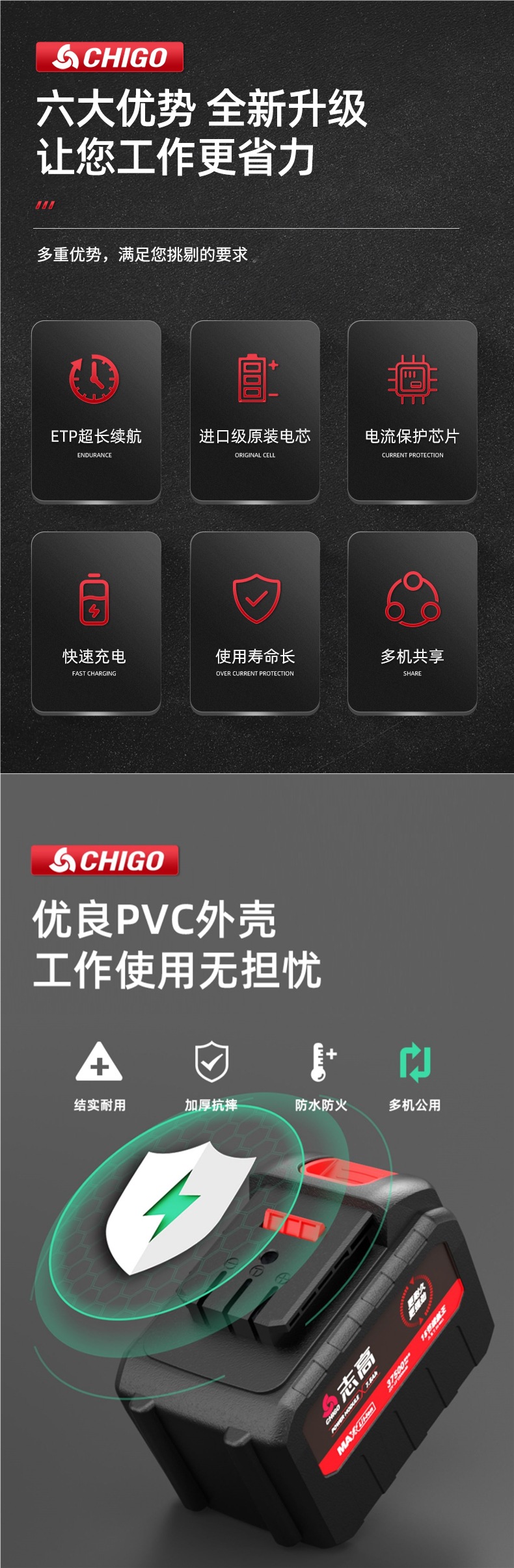 • Chigo 15셀 헤비듀티 6.0AH 리튬 배터리