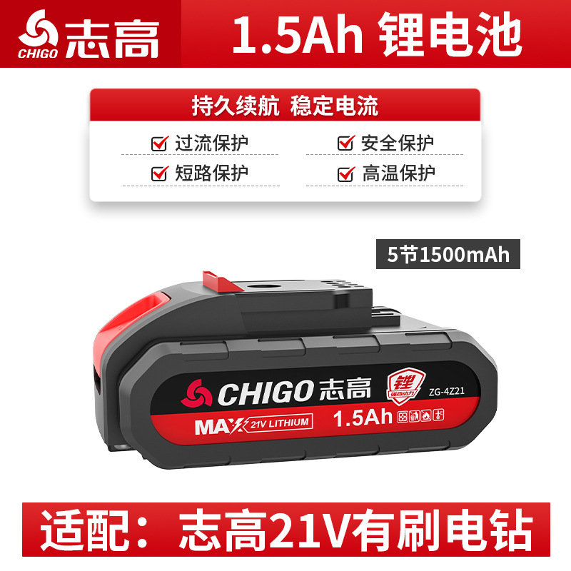 • Chigo 5셀 브러시드 전기 드릴 1.5AH 리튬 배터리
