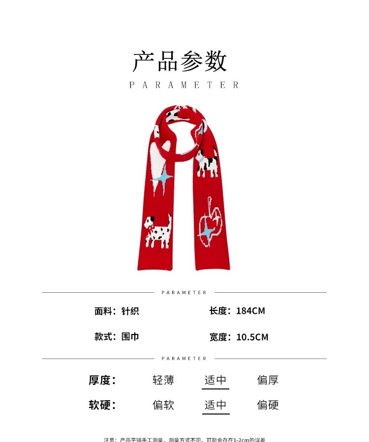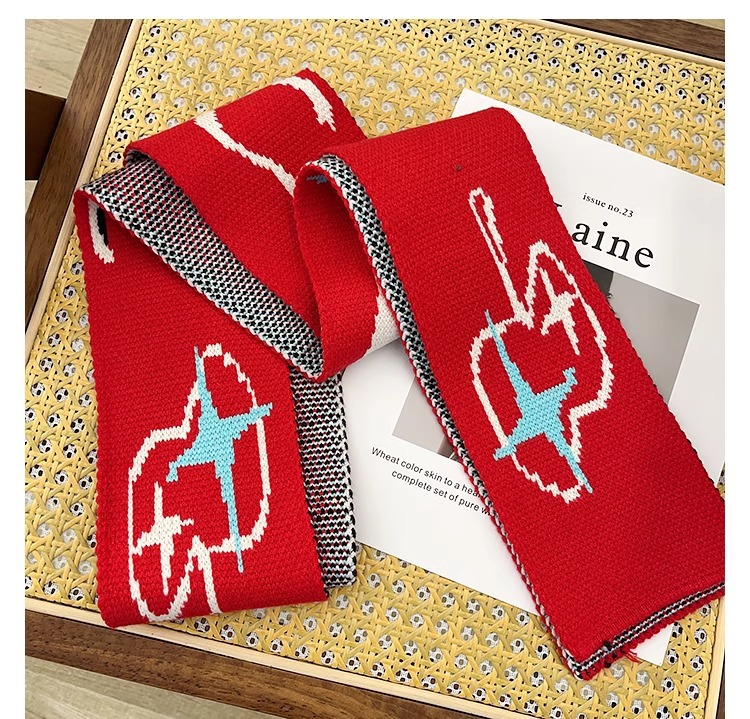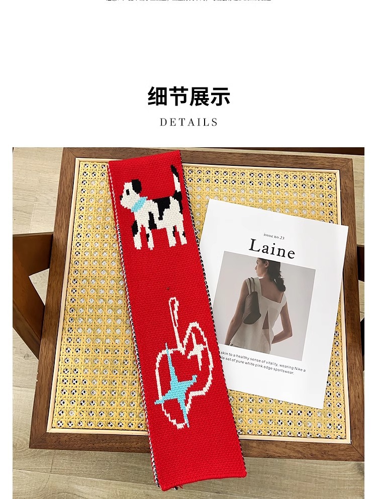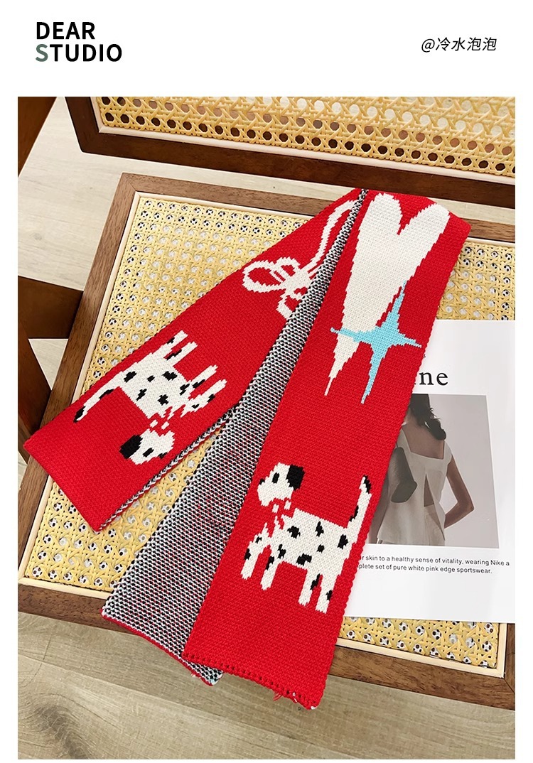 2024 새로운 도착 레드 강아지 자수 니트 스카프 여성의 가을과 겨울 주변 긴 Y2K 장식 스카프