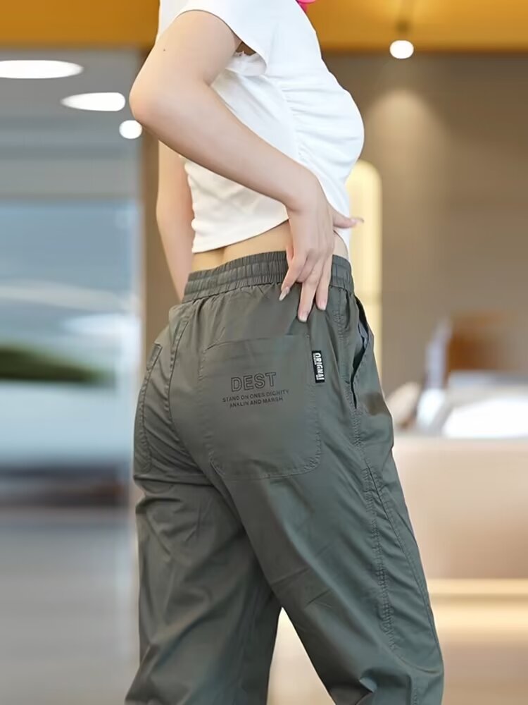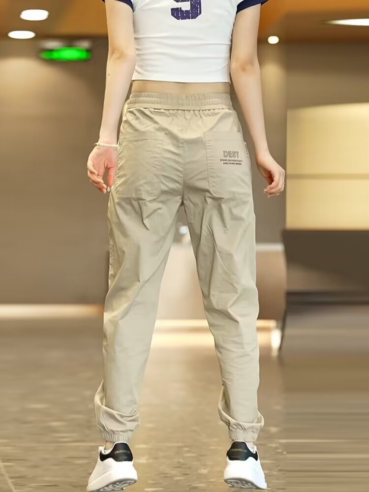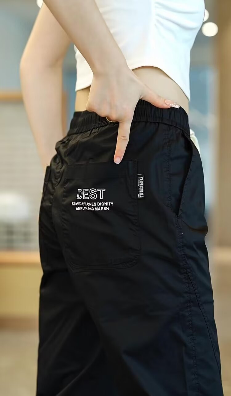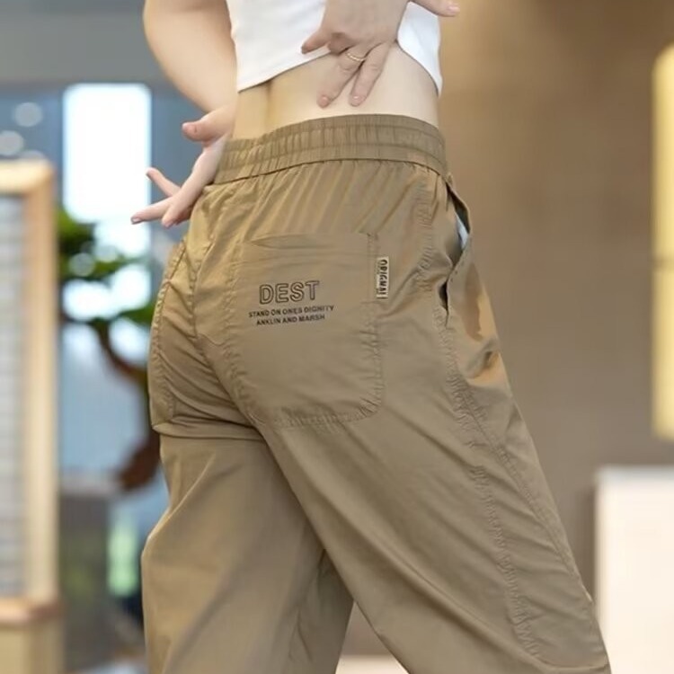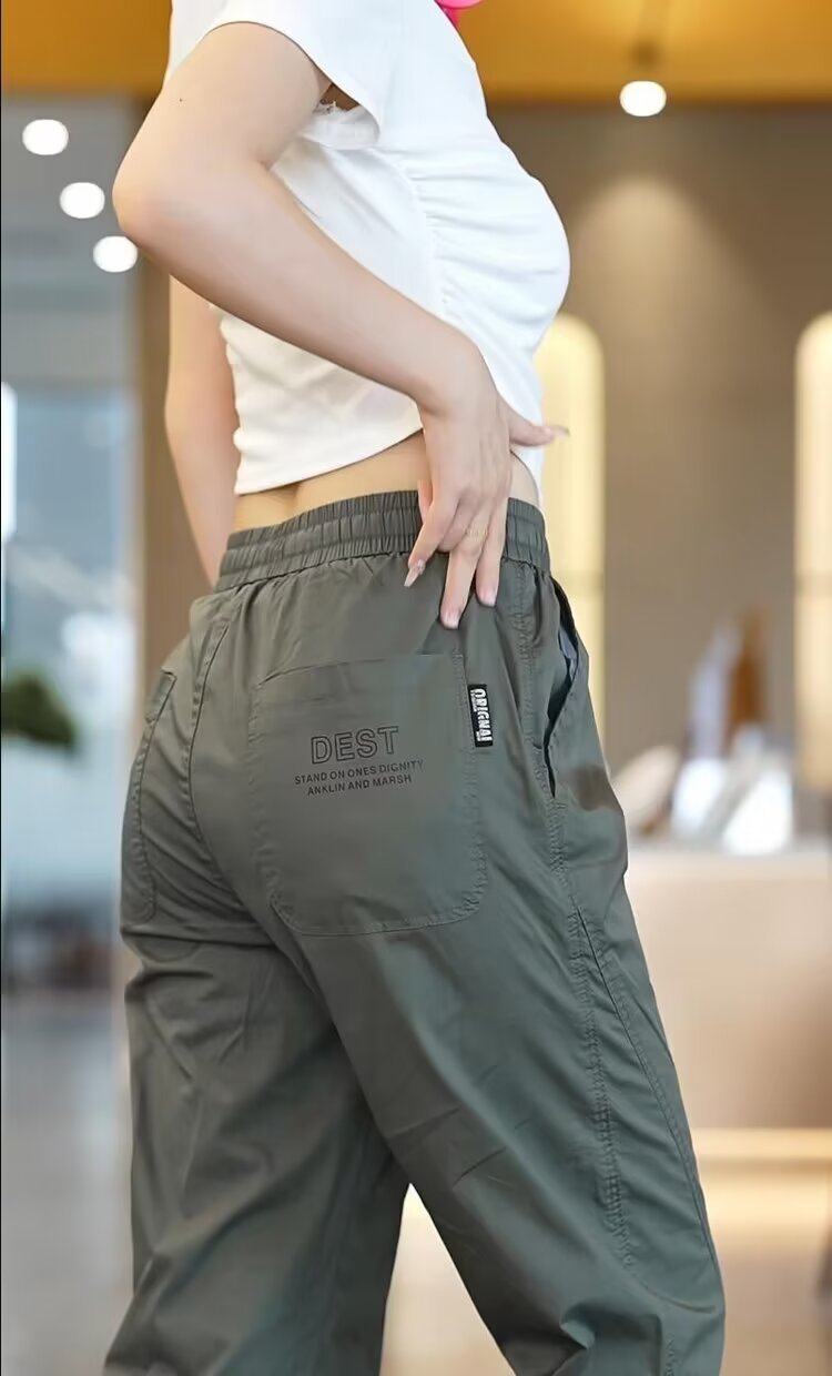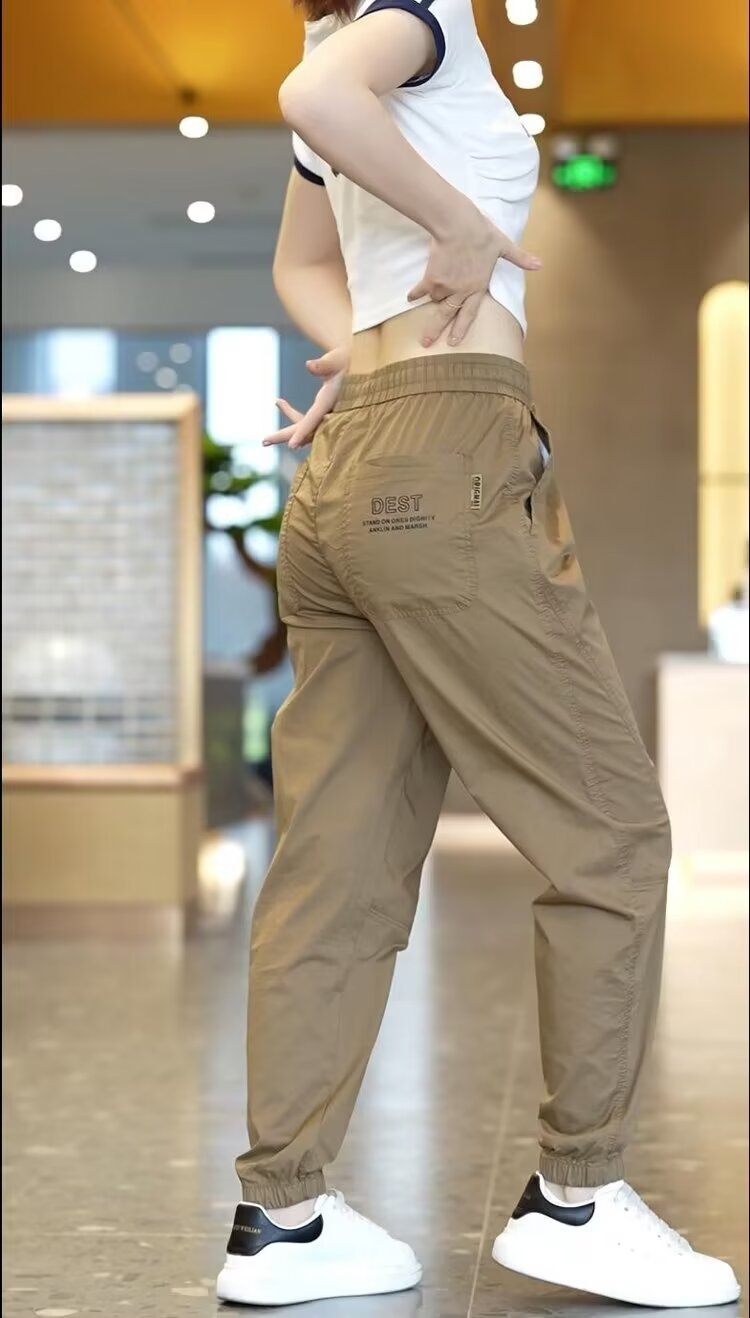 2025 아이스 실크 여름 작업용 백 포켓 및 발목 속건 캐주얼 바지 남성용 루즈한 대형 스포츠 바지스토어 가기