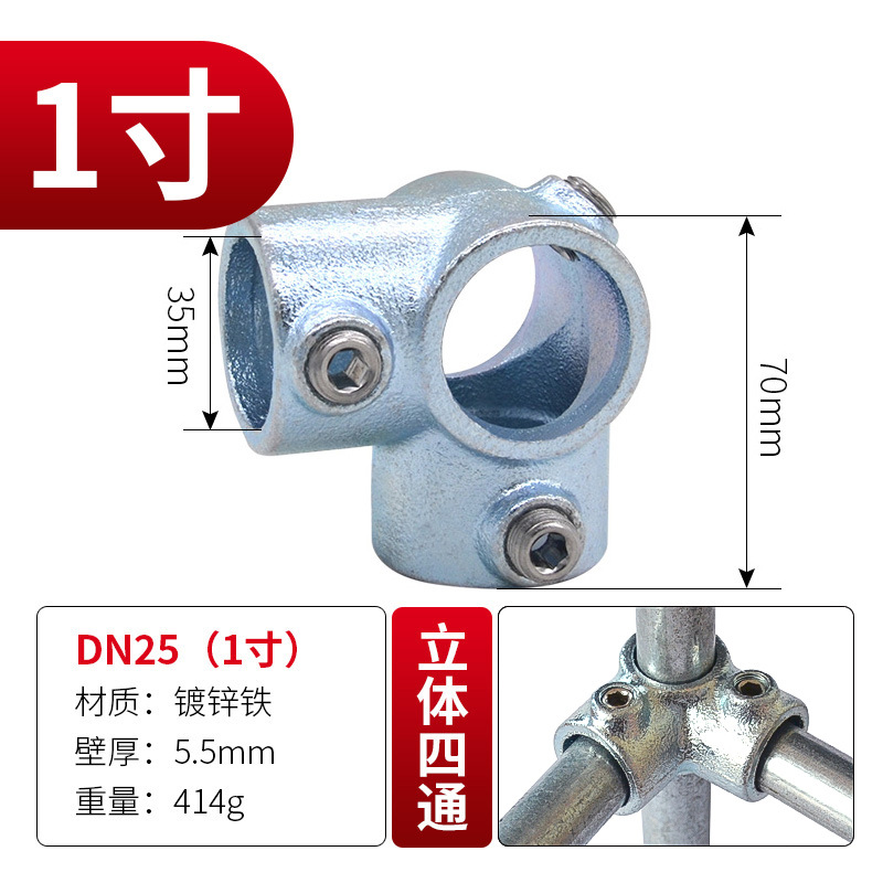 • 1inch 외경 32-34mm 강관에 적합한 입체 4방향