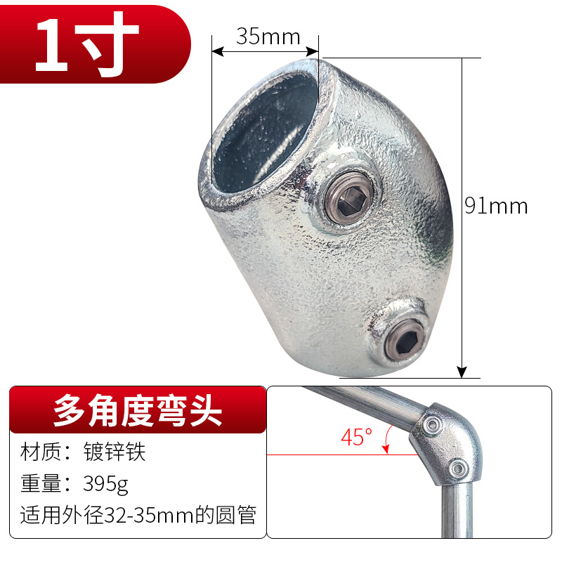 • 1inch 외경 32-34mm의 강관에 적합한 멀티 앵글 엘보
