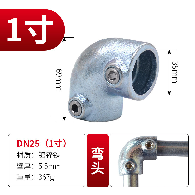 1 인치 아연 도금 파이프 강관 32 라운드 파이프 커넥터 주철 선반 건조 랙 연결 패스너 용접없는 팔꿈치