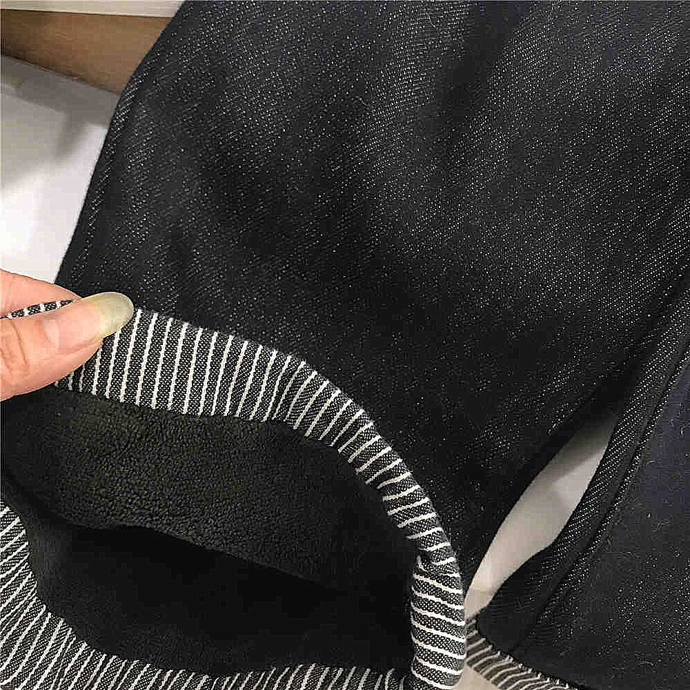 • 세로 줄무늬 솔리드 컬러 플리스 청바지
