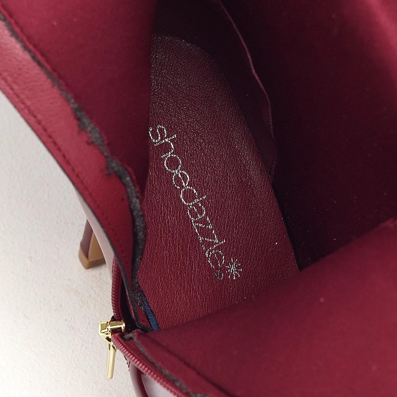 대외 무역 미국 오리지널 플러스 사이즈 4344 버건디 특허 가죽 뾰족한 하이힐 벨트 버클 지퍼 하이 부츠스토어 가기