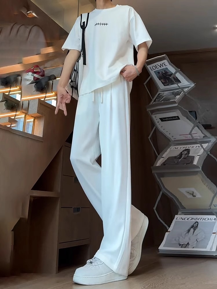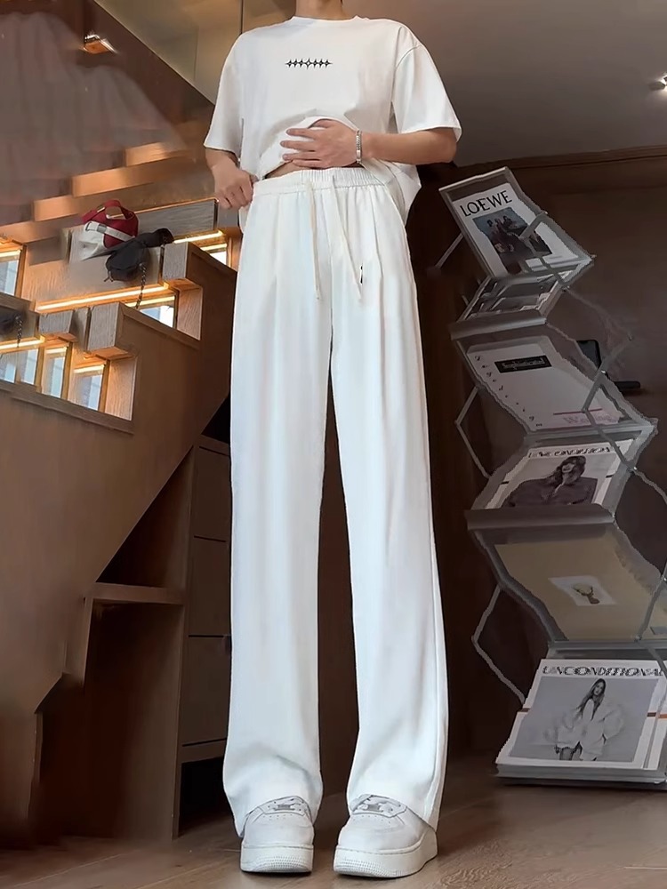 국경 2024 가을과 겨울 새로운 남성 세트 바지 드레이프 바지 좁은 버전 미국 캐주얼 슬림 스트레이트 도매