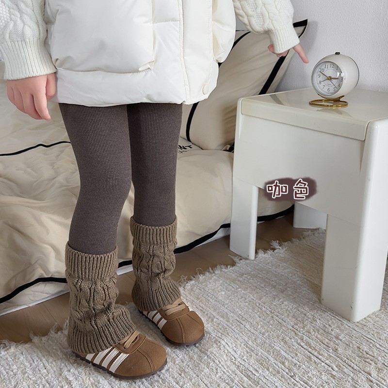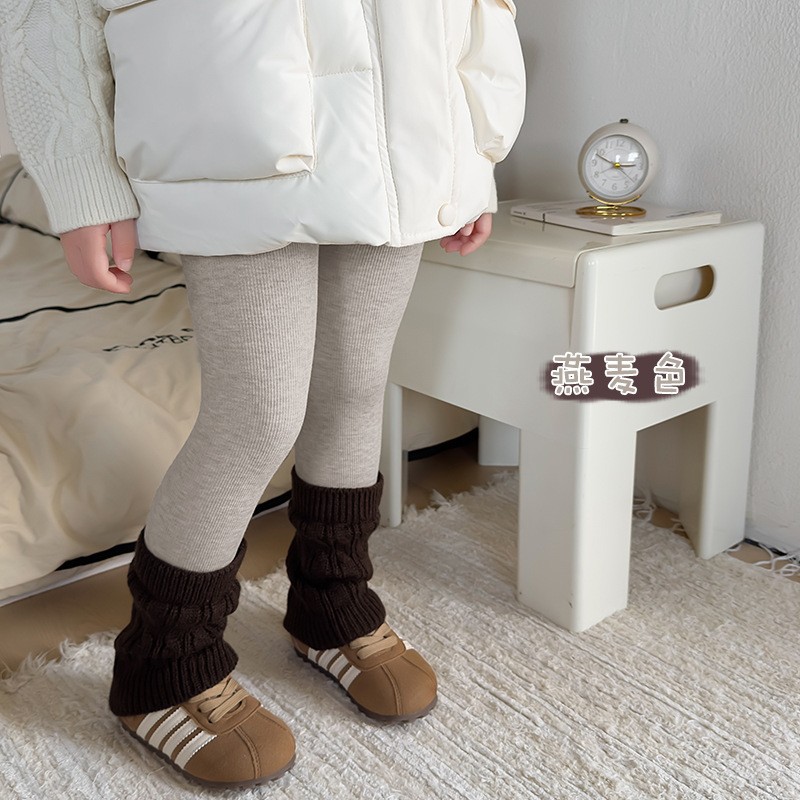 여아용 기모 안감 두꺼운 레깅스, 가을 겨울용, 외출용, 세로 줄무늬 배색 양말 스타일, 아동용 일체형 기모 보온 바지스토어 가기