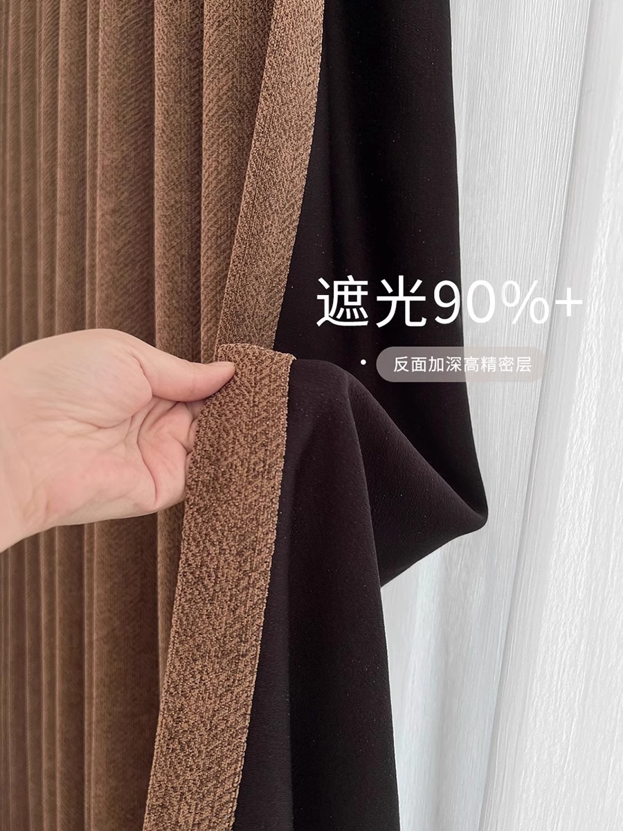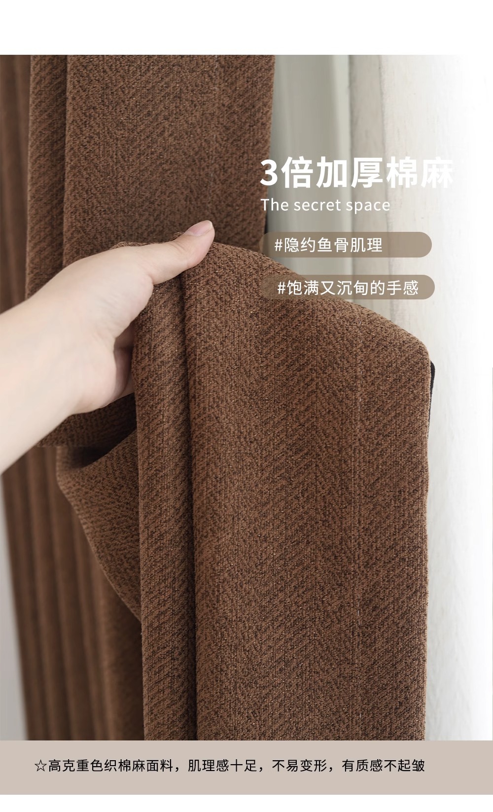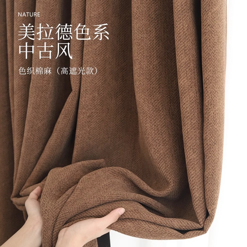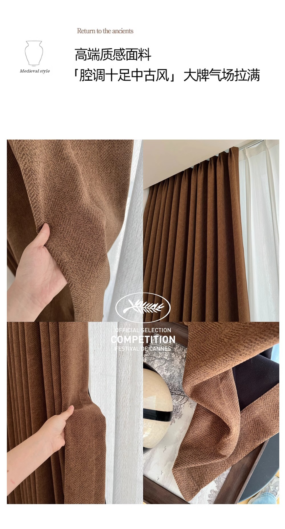Chunye 시리즈 2024 새로운 골동품 질감면 및 린넨 Maillard 크림 커튼 거실 침실 그물 레드