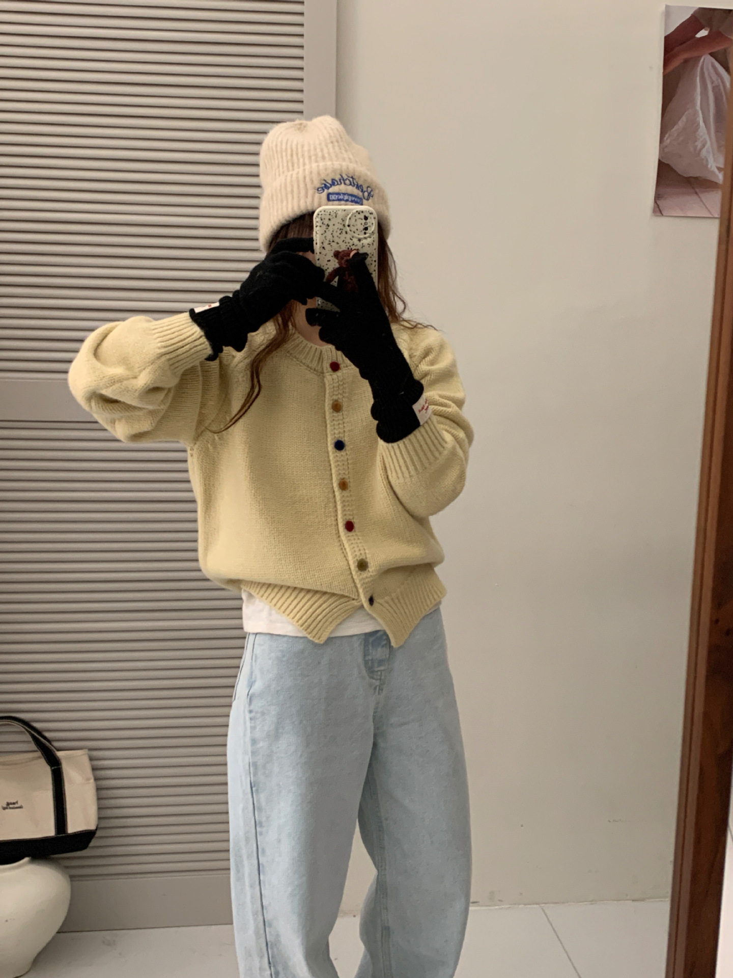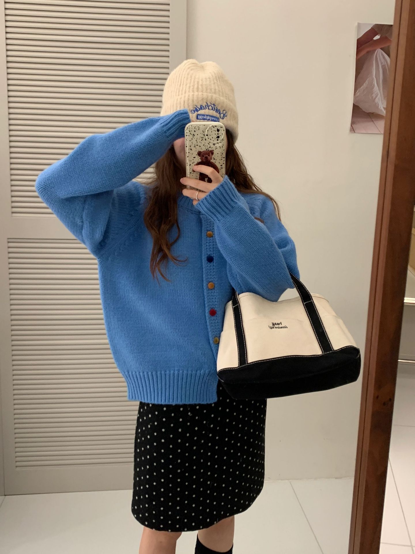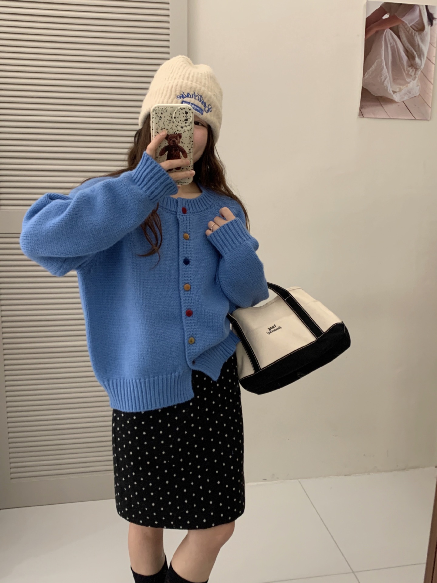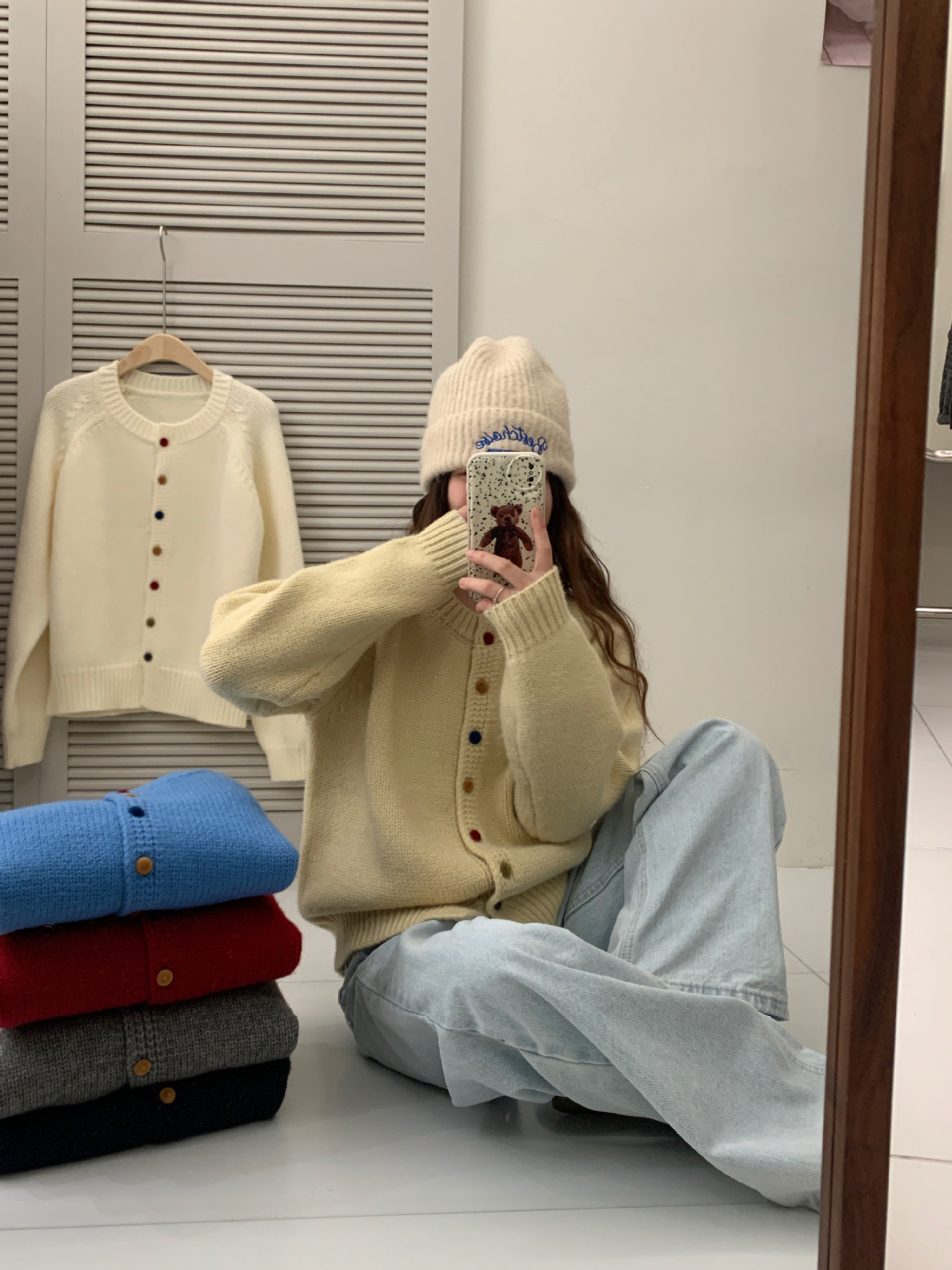 한국 스타일 게으른 소프트 왁스 벨벳 버튼 스웨터 코트 여자 겨울 24 새로운 슈퍼 니스 라운드 넥 라글란 슬리브 니트 카디건스토어 가기