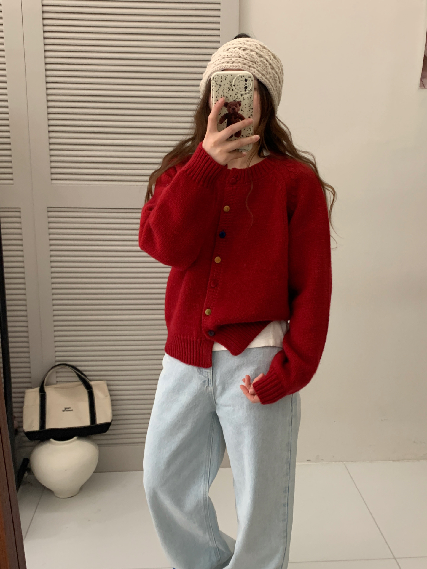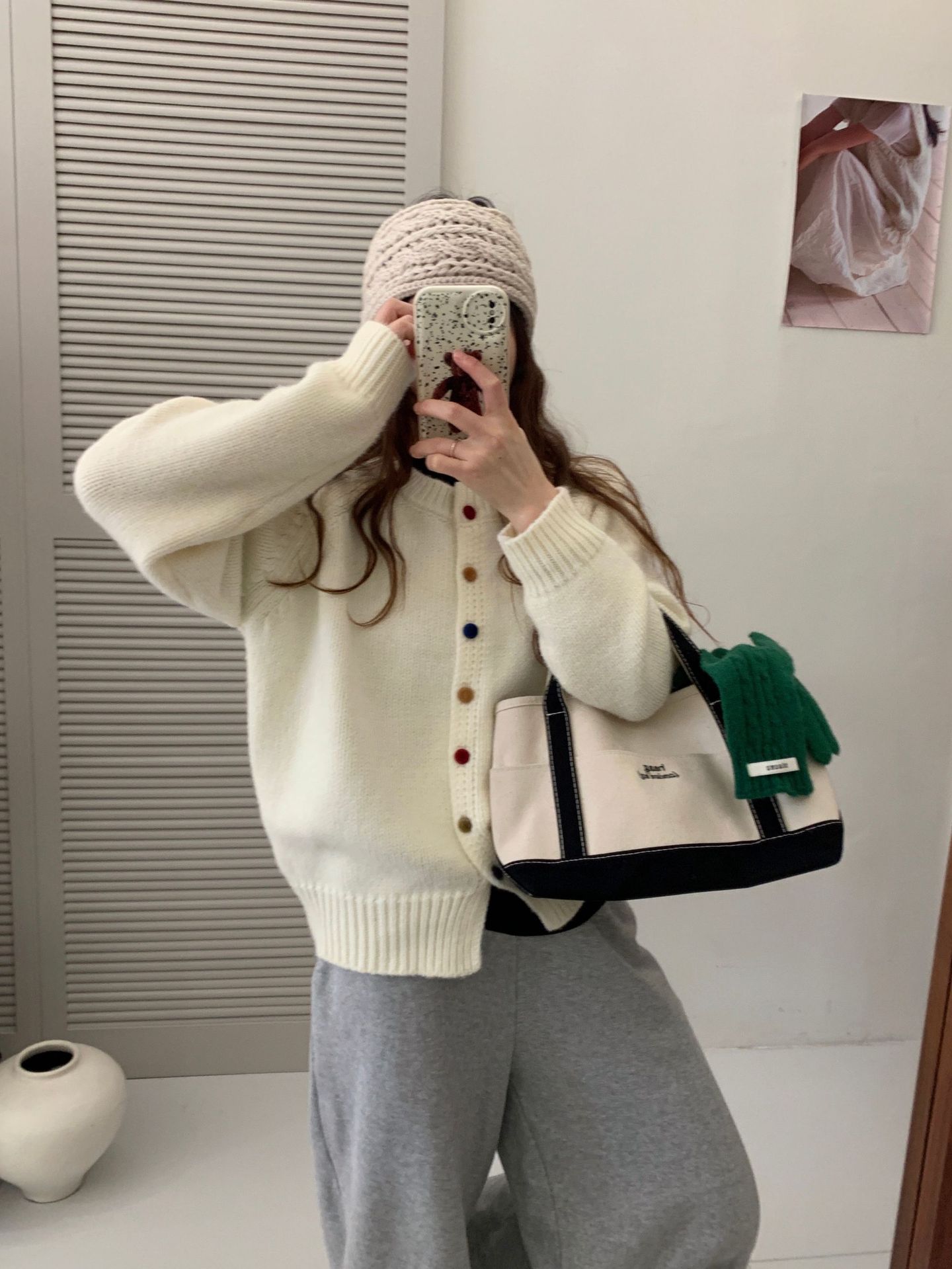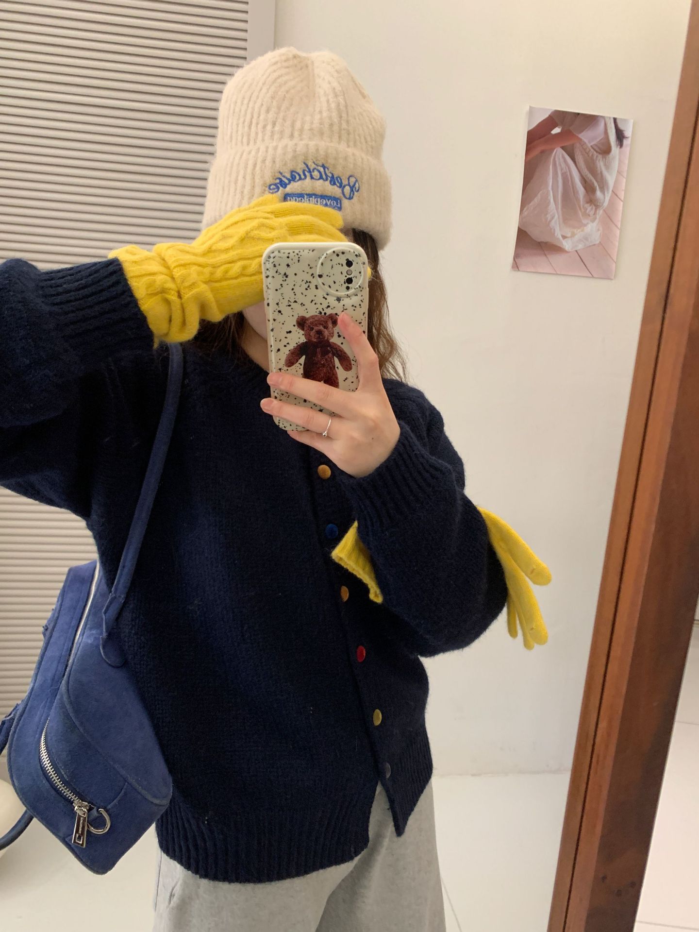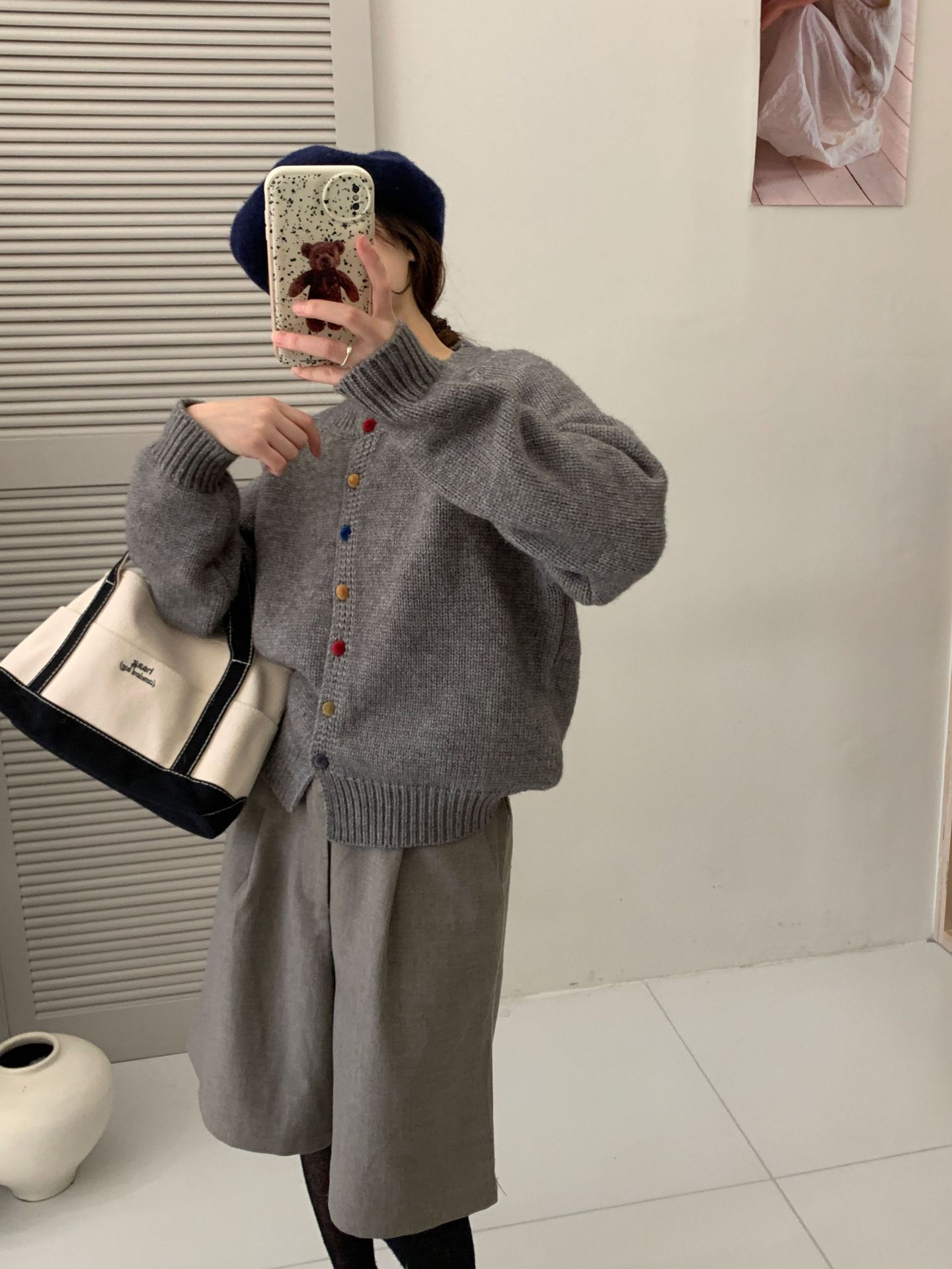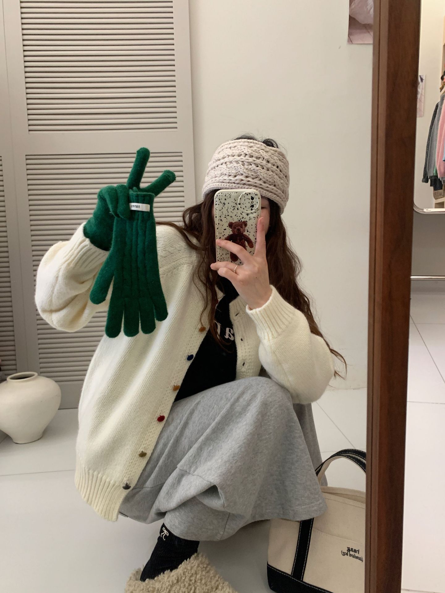 한국 스타일 게으른 소프트 왁스 벨벳 버튼 스웨터 코트 여자 겨울 24 새로운 슈퍼 니스 라운드 넥 라글란 슬리브 니트 카디건스토어 가기