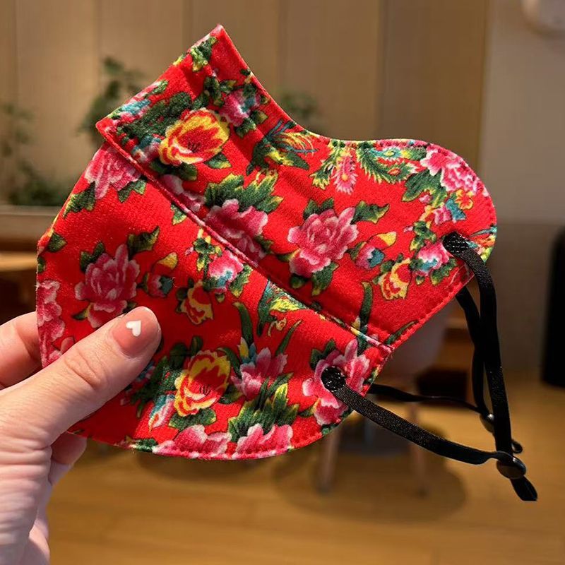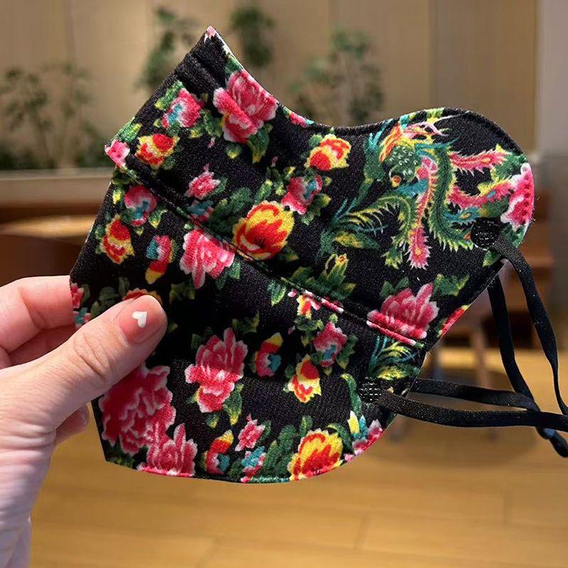 동북 꽃 마스크 겨울 두꺼운 방풍 및 방한 사이클링 따뜻한 마스크 입체 하얼빈 여행 기념품
