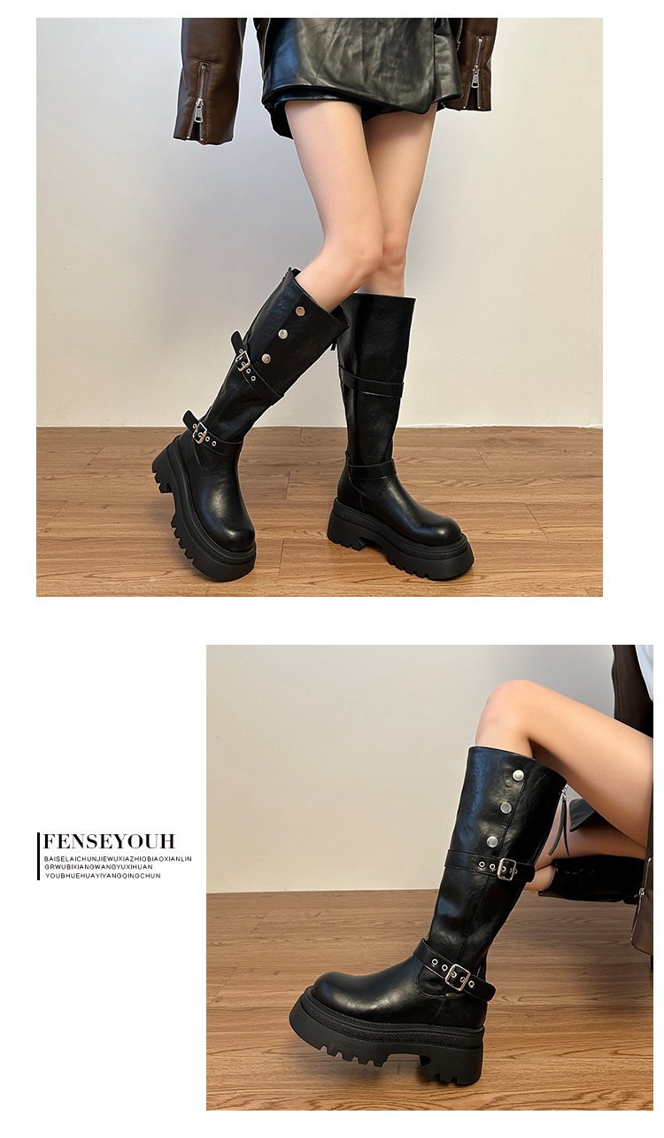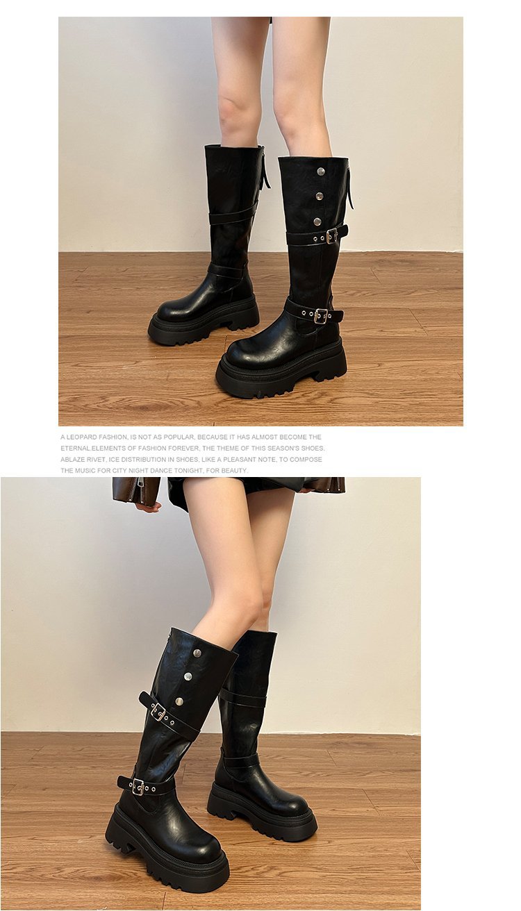 Maillard Retro 영국 스타일 두꺼운 힐 두꺼운 바닥 부츠 여성의 2024 가을 및 겨울 새로운 하이 튜브 슬리밍 나이트 부츠스토어 가기
