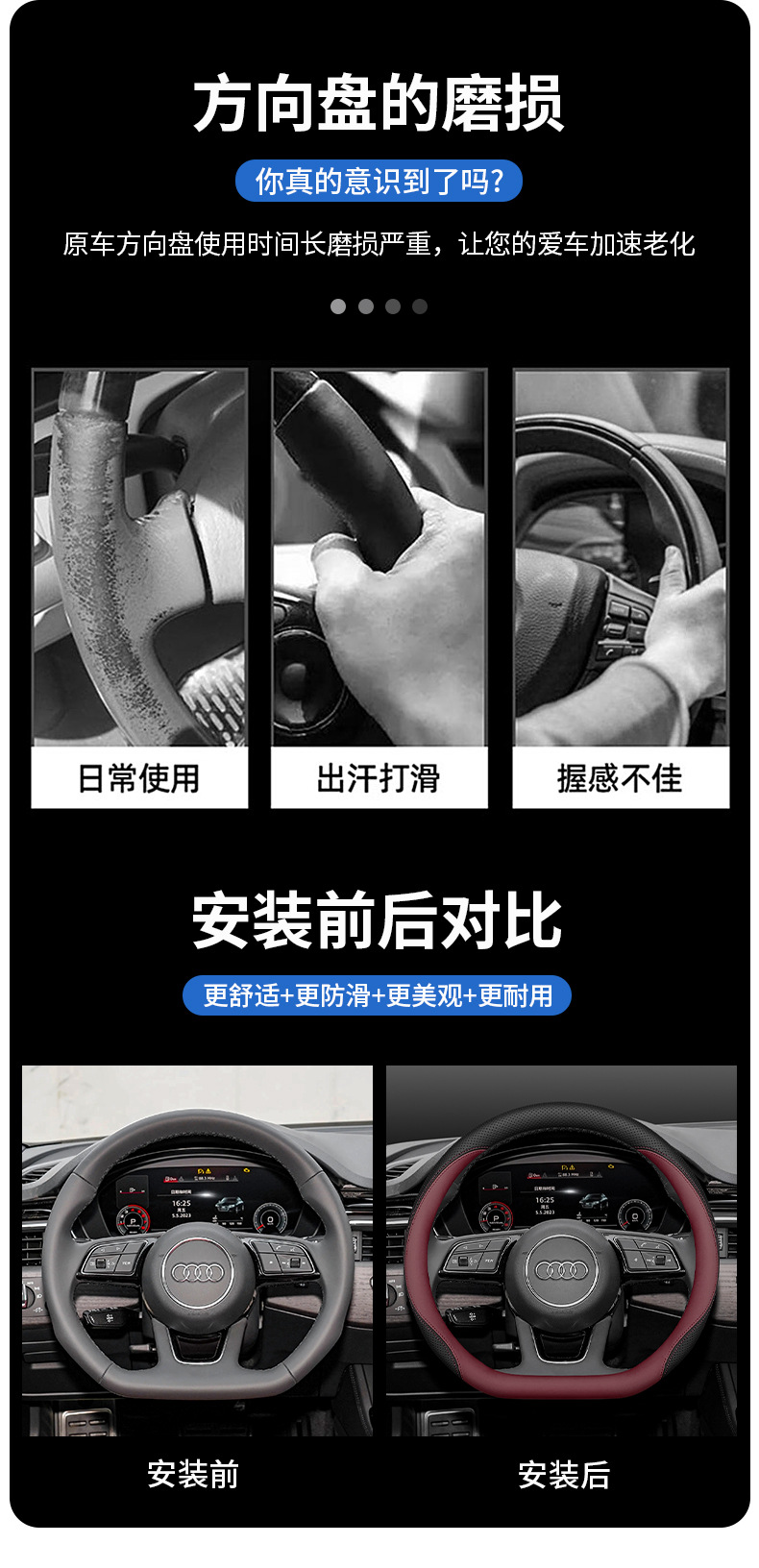 아우디 A4L 스티어링 휠 커버 새로운 Q5L A6L A7L Q3 Q2L A3 A5 A8 Q7 특수 가죽 핸들 커버스토어 가기