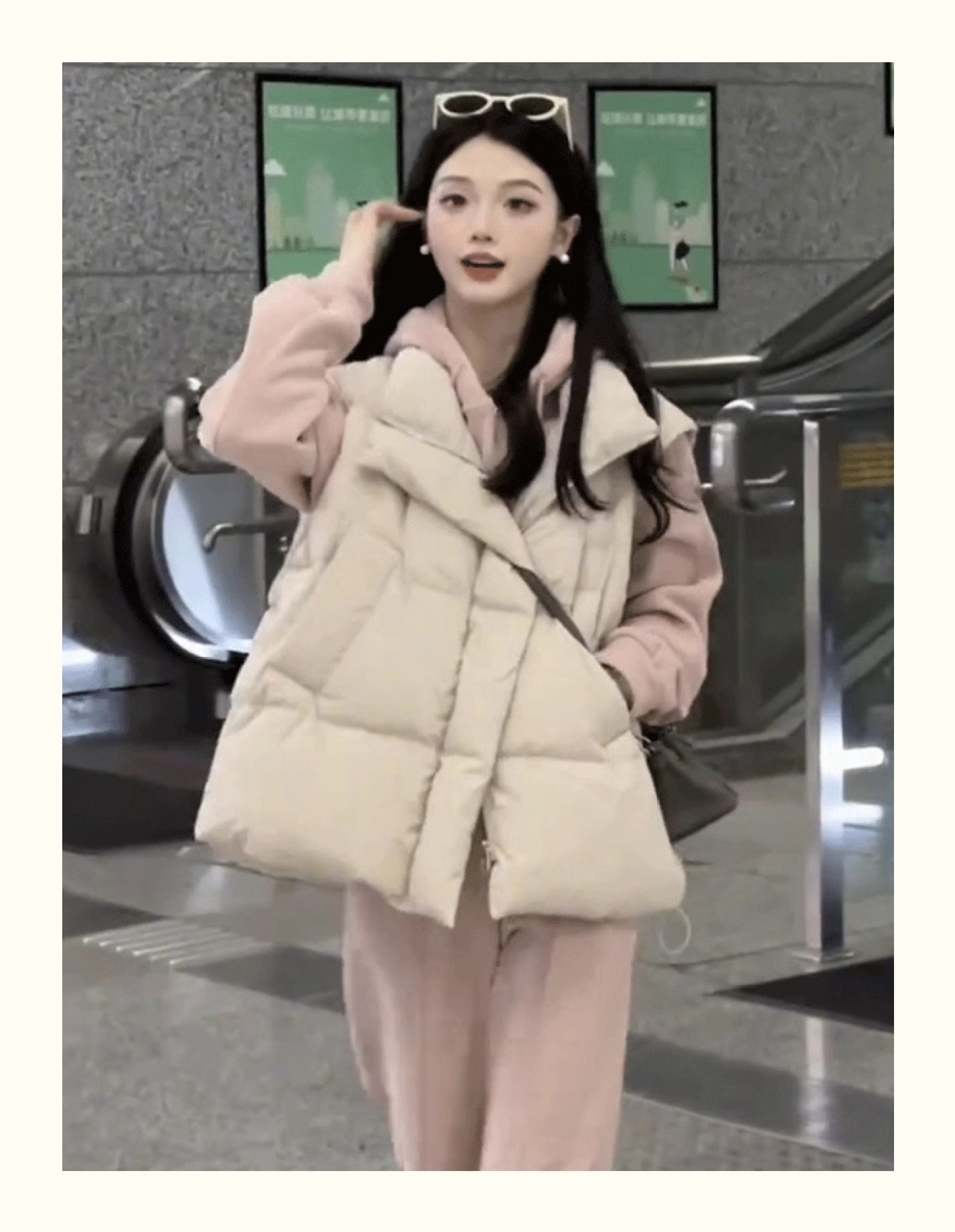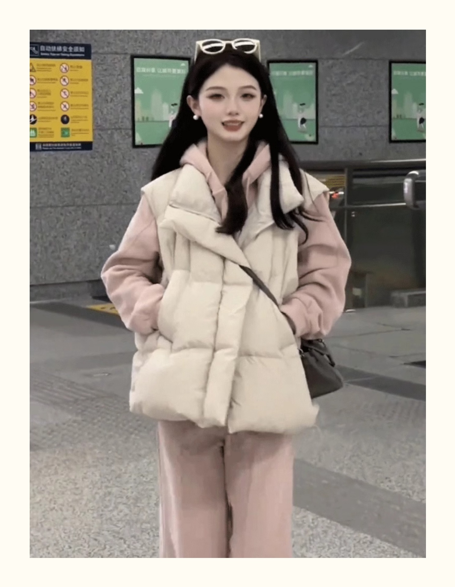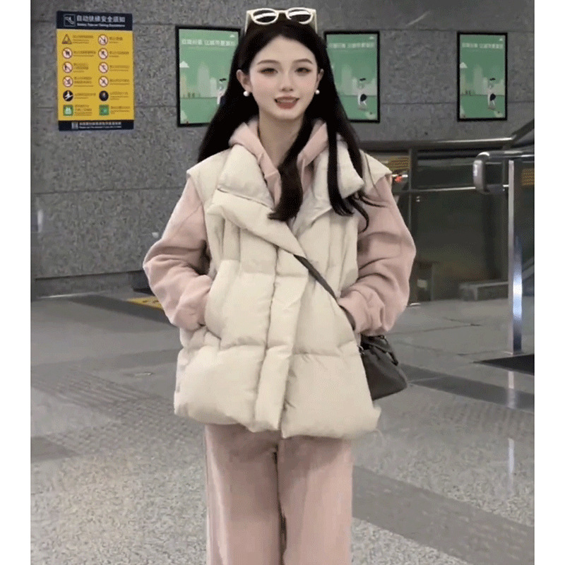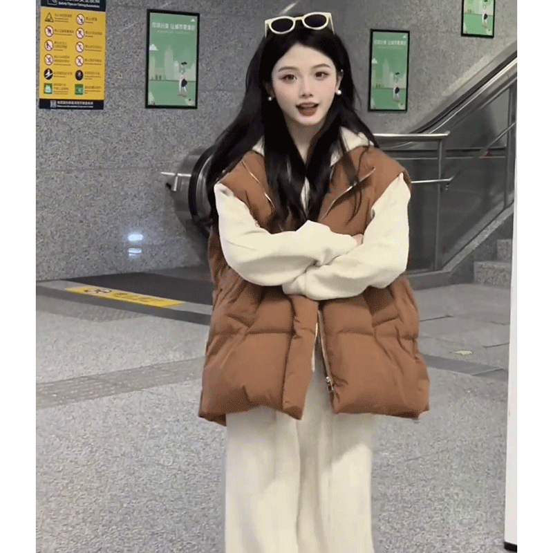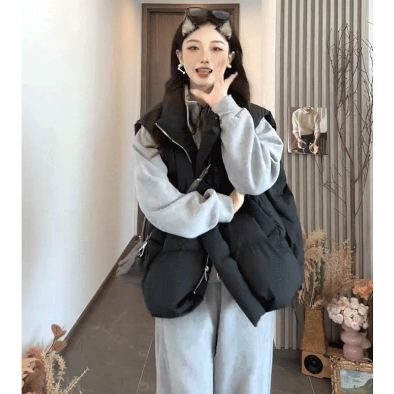수직 칼라 사이드 포켓 짧은 다운 코튼 조끼 여성의 가을과 겨울 새로운 스타일 민소매 조끼 클립 유행 탑스토어 가기