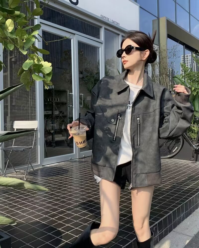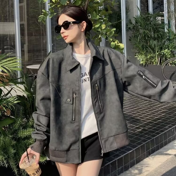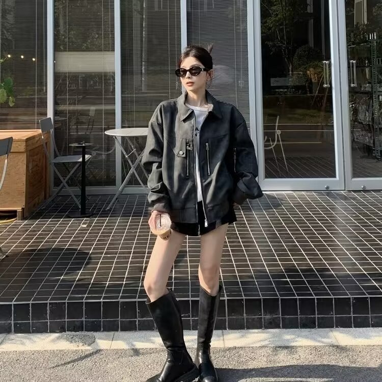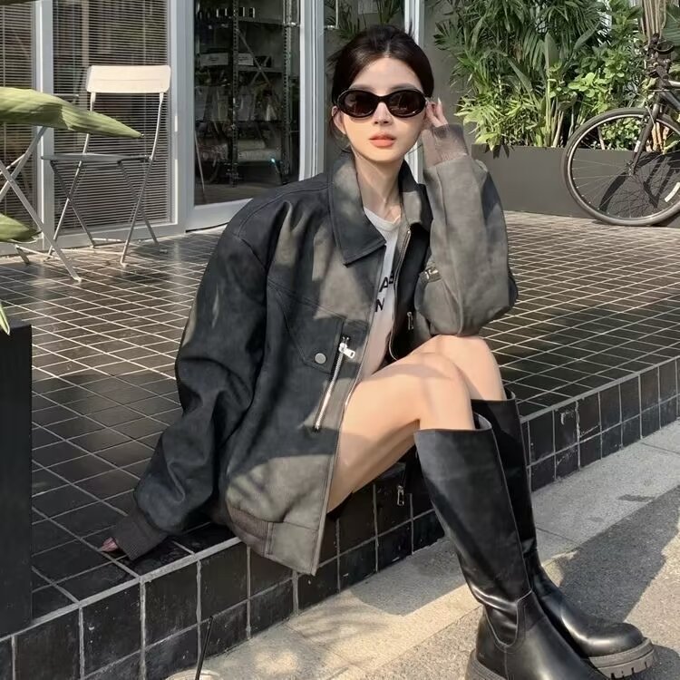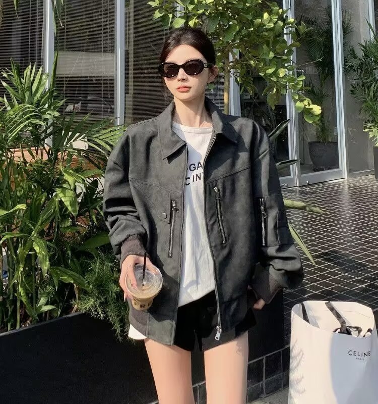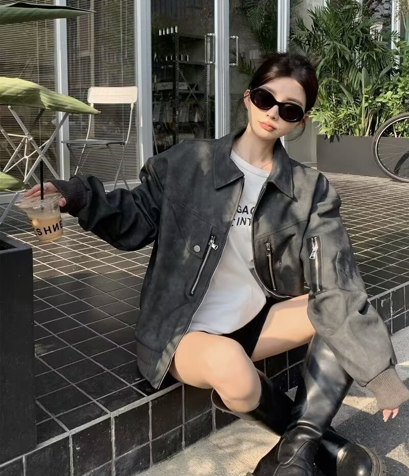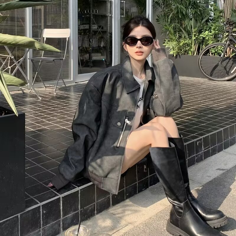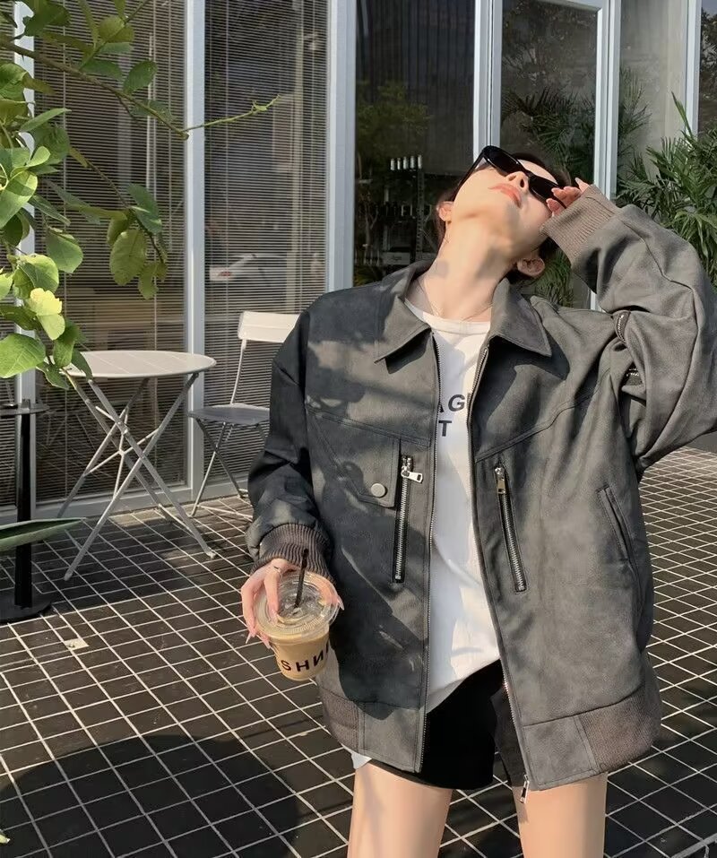 K09source 새로운 마일라드 가죽 자켓 남자 봄과 가을 바이브 아메리칸 패셔너블 레트로 커플 하이 엔드 재킷스토어 가기