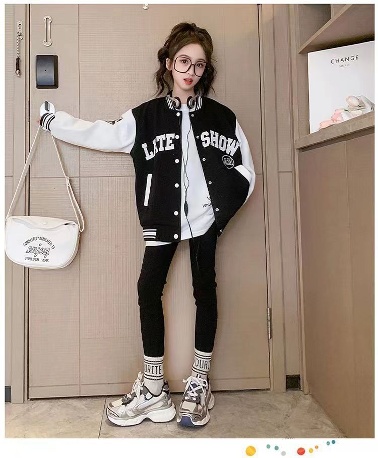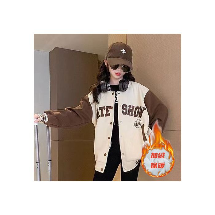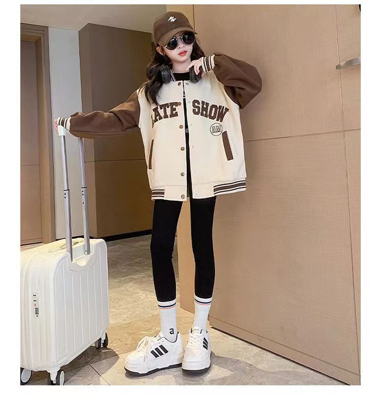 소녀 아동복 가을과 겨울 코트 2024 서양식 야구 세트 소녀 중 큰 어린이 기모 재킷 가을 옷 패션스토어 가기