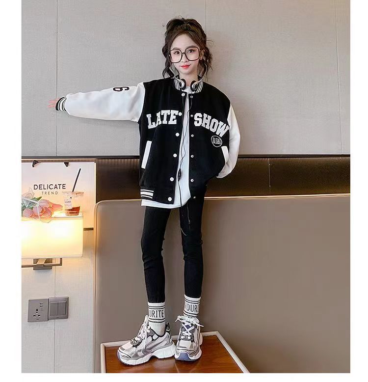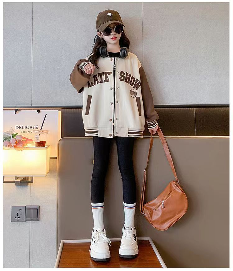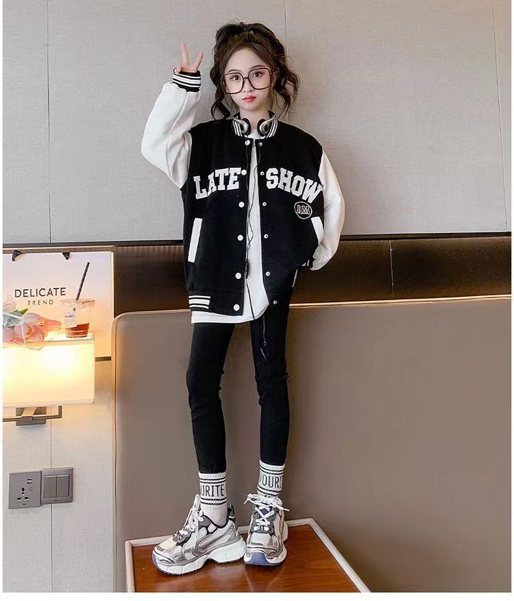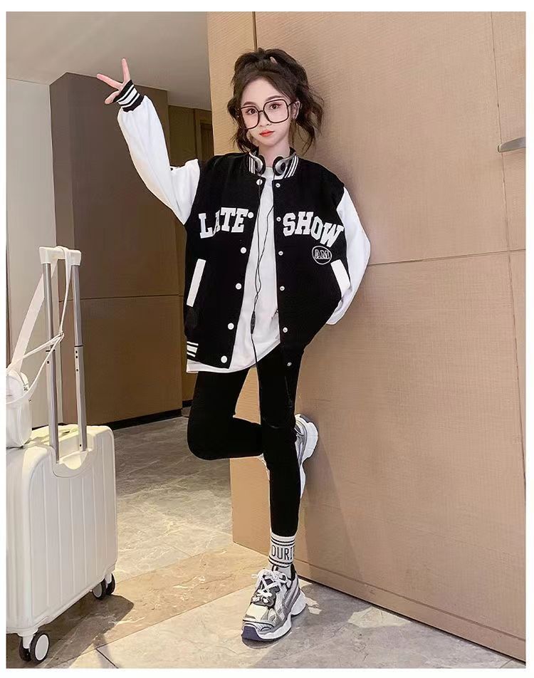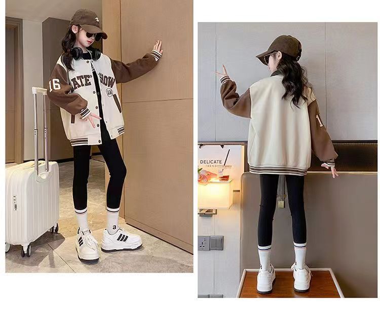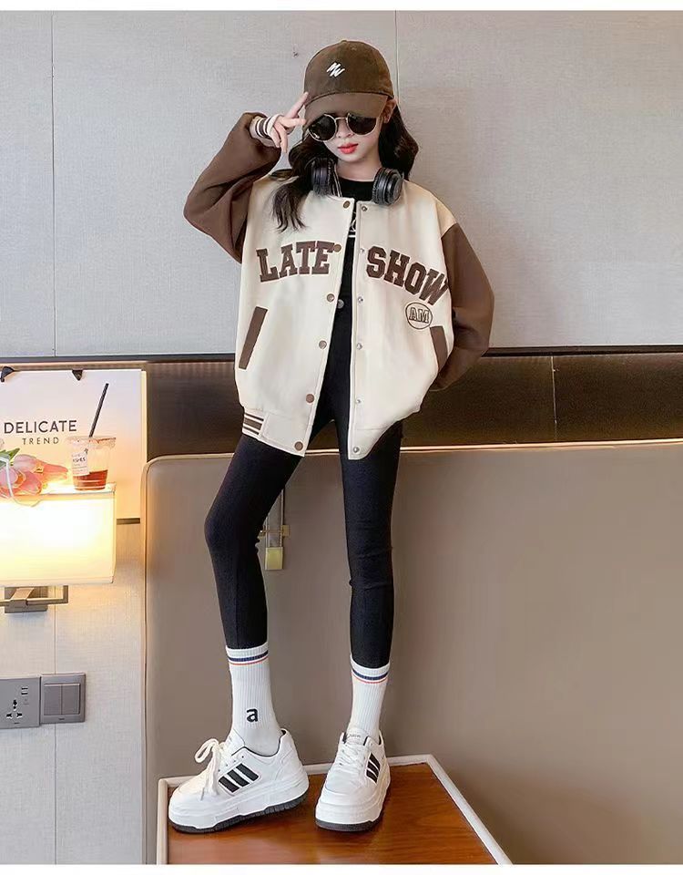 소녀 아동복 가을과 겨울 코트 2024 서양식 야구 세트 소녀 중 큰 어린이 기모 재킷 가을 옷 패션