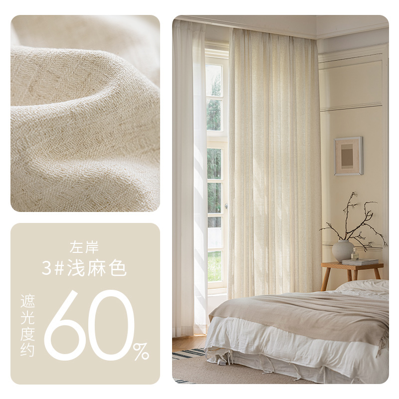 프랑스 스타일 린넨 커튼 반음영 간단한 중국 스타일 거실 다실 스터디 룸 홈스테이 바람 투명한 왼쪽 은행스토어 가기