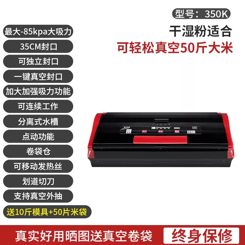 • 350K 업그레이드 버전 레드(높은 흡입력, 넓어진 씰)에는 5파운드 쌀 벽돌 봉지 10개가 포함되어 있습니다.