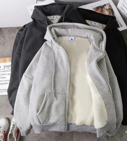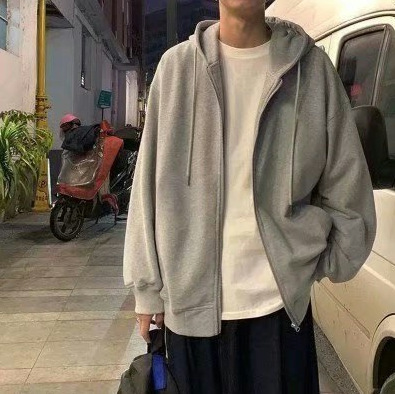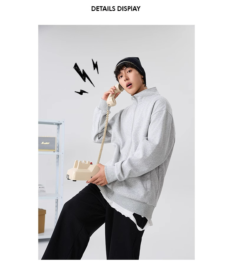 • 카디건 지퍼 스웨트셔츠 라이트 그레이 플러스 벨벳