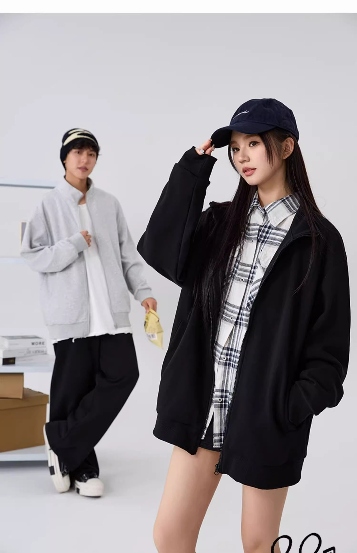 • 카디건 지퍼 스웨트셔츠 블랙 플러스 벨벳