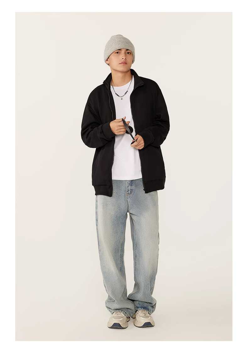 일본식 레트로 스포츠 재킷 남자 봄과 가을 남자 스웨터 카디건 가을 남자 수직 칼라 지퍼 가을 재킷스토어 가기