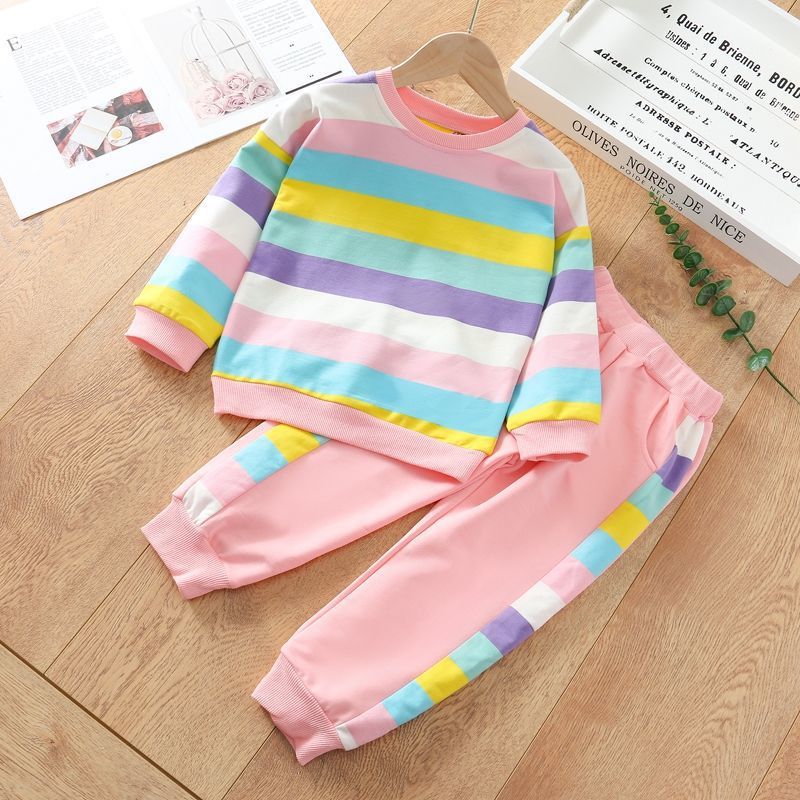 소녀의 무지개 세트 2021 새로운 대형 어린이 봄과 가을 어린이 서양식 올매치 최고 캐주얼 바지 투피스 세트