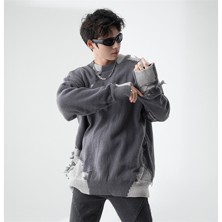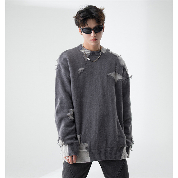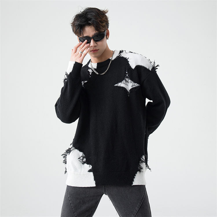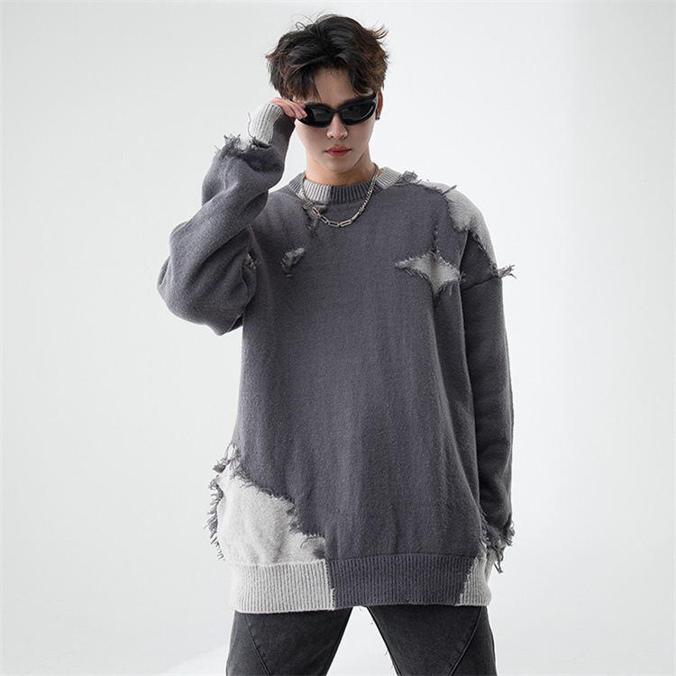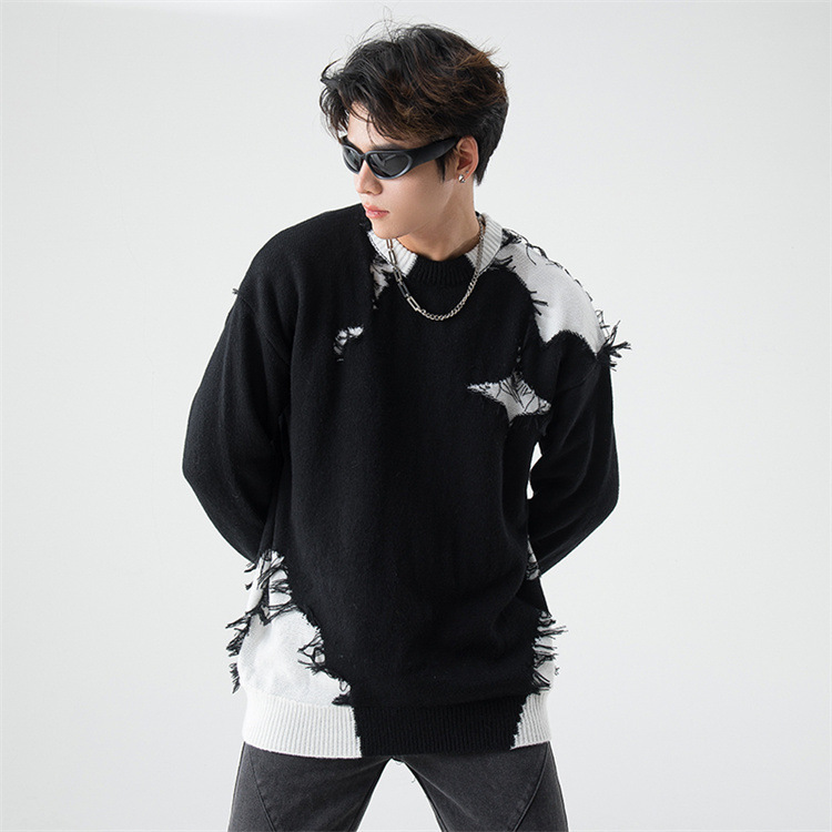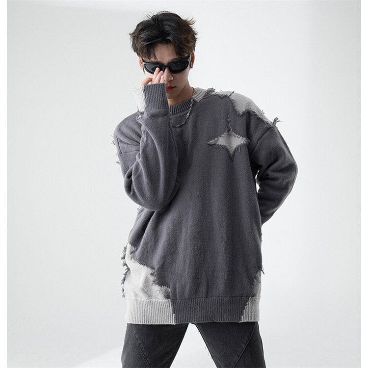 레트로 트렌디 브랜드 하이 스트리트 맞춤법 넝마 힙합 보이즈 올매치 루즈 니트 셔츠 가을과 겨울 프라이드 스트리트 긴팔 탑 옷스토어 가기