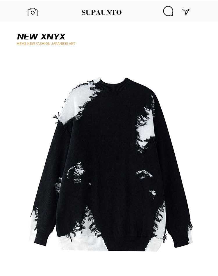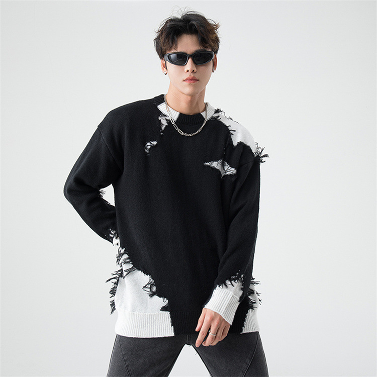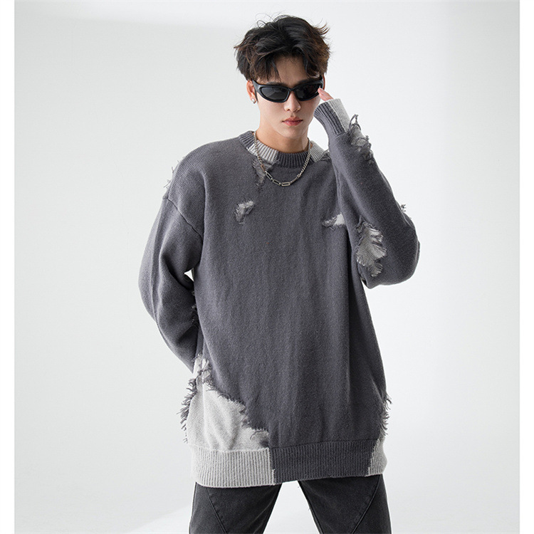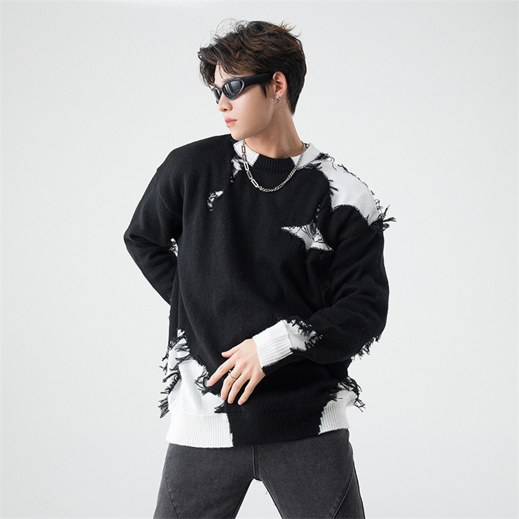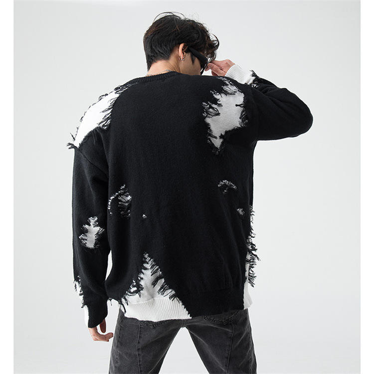 레트로 트렌디 브랜드 하이 스트리트 맞춤법 넝마 힙합 보이즈 올매치 루즈 니트 셔츠 가을과 겨울 프라이드 스트리트 긴팔 탑 옷스토어 가기