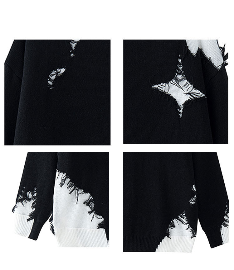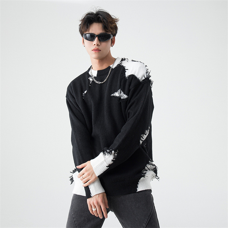 레트로 트렌디 브랜드 하이 스트리트 맞춤법 넝마 힙합 보이즈 올매치 루즈 니트 셔츠 가을과 겨울 프라이드 스트리트 긴팔 탑 옷