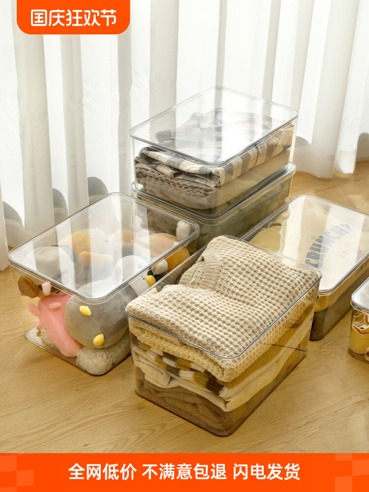 투명한 저장 상자 플라스틱 두꺼운 옷 뚜껑 방진 밀봉 내부 옷장 보관 상자 장난감 책 전체 타오 치
