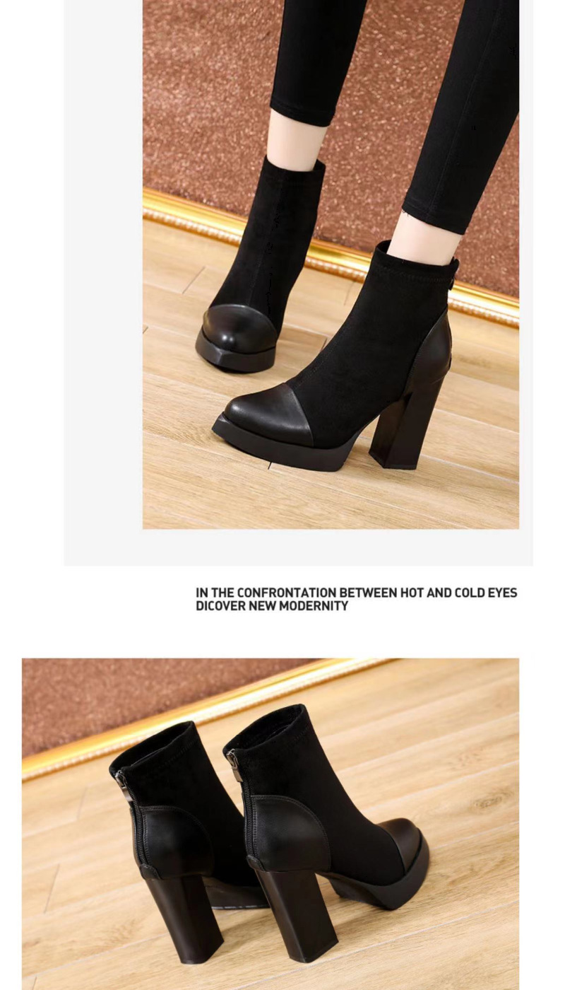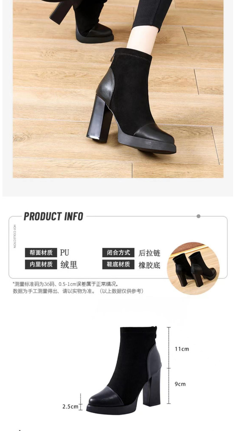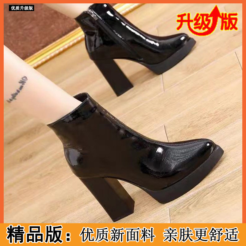 여성용 캐주얼 굽이 두꺼운 숏부츠 2025 신상 가을 겨울 하이힐 여성용 뒷지퍼 방수 플랫폼 중간 길이 가죽 부츠 다용도스토어 가기