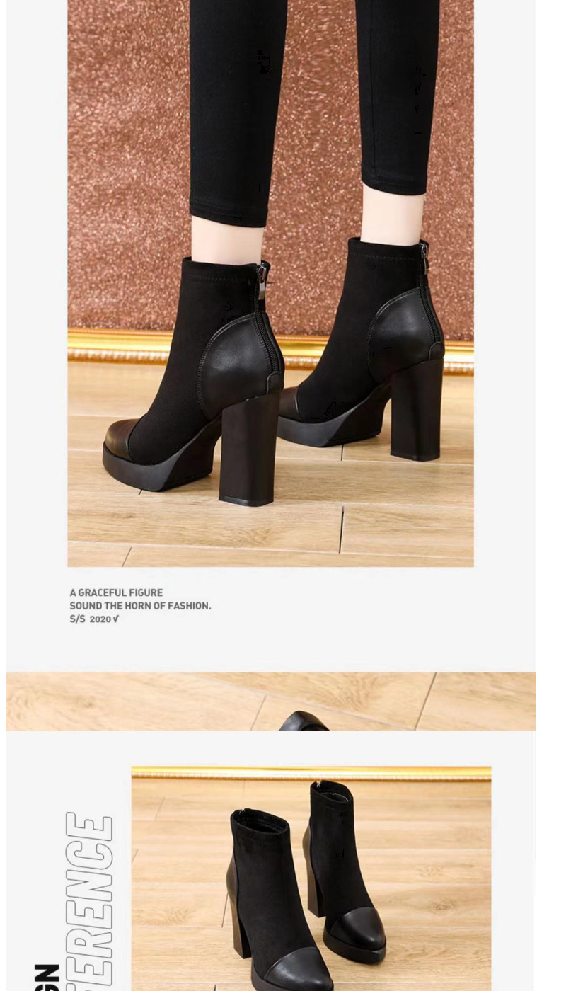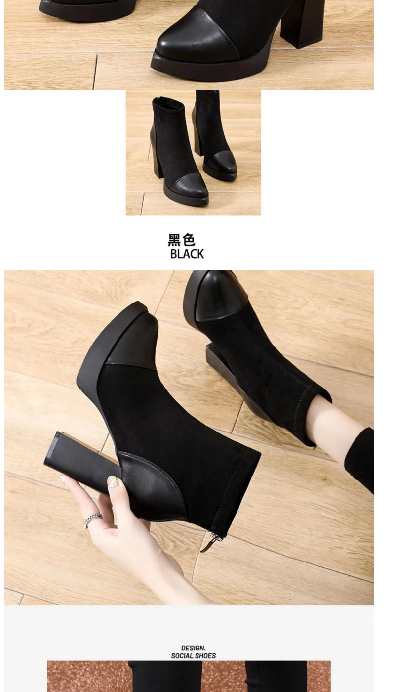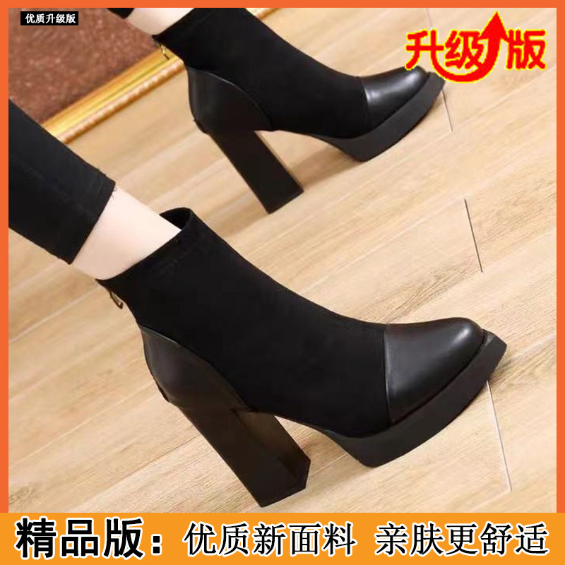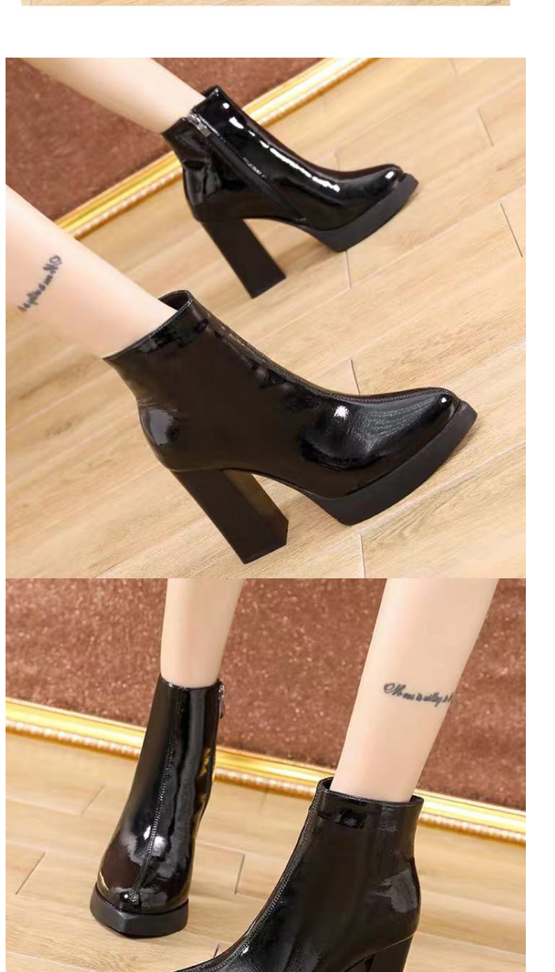 여성용 캐주얼 굽이 두꺼운 숏부츠 2025 신상 가을 겨울 하이힐 여성용 뒷지퍼 방수 플랫폼 중간 길이 가죽 부츠 다용도스토어 가기