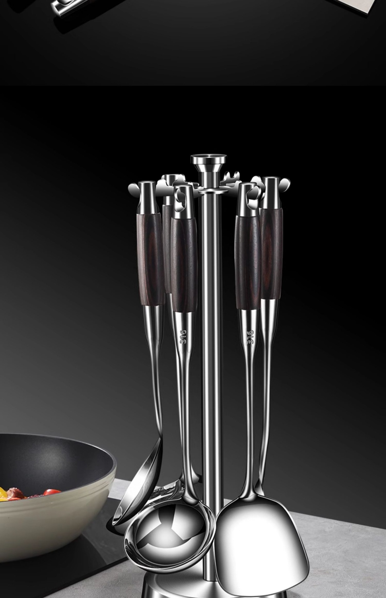 • 316 스틸 컬러 나무 손잡이 6종 세트(주걱+국숟가락+소쿠리+주걱+밥숟가락+스탠드)