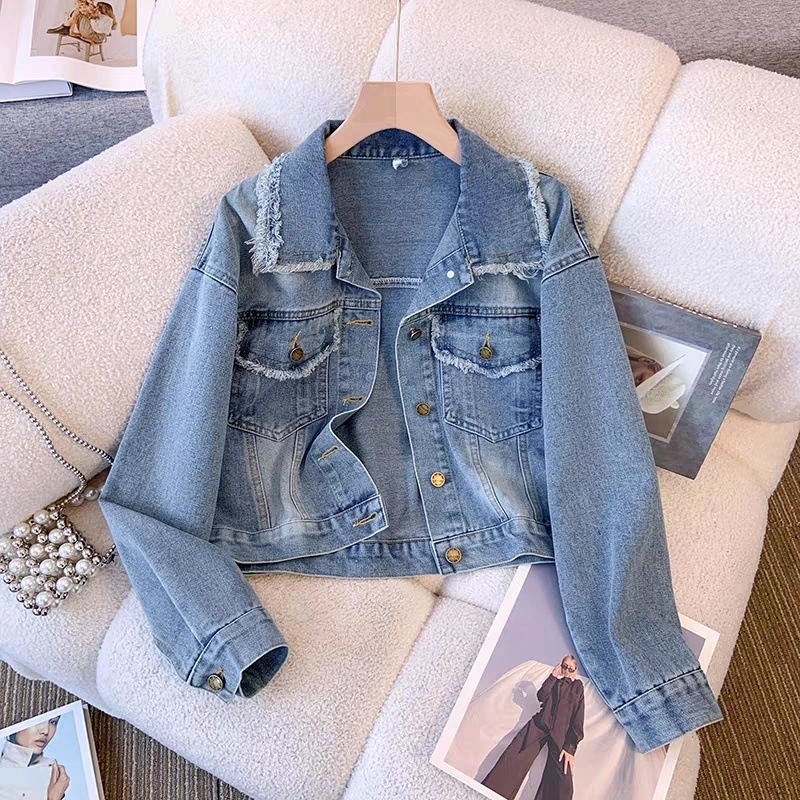 빈티지 홍콩 스타일 데님 재킷 여성의 봄과 가을 새로운 한국 스타일 느슨한 짧은 재킷 탑스토어 가기