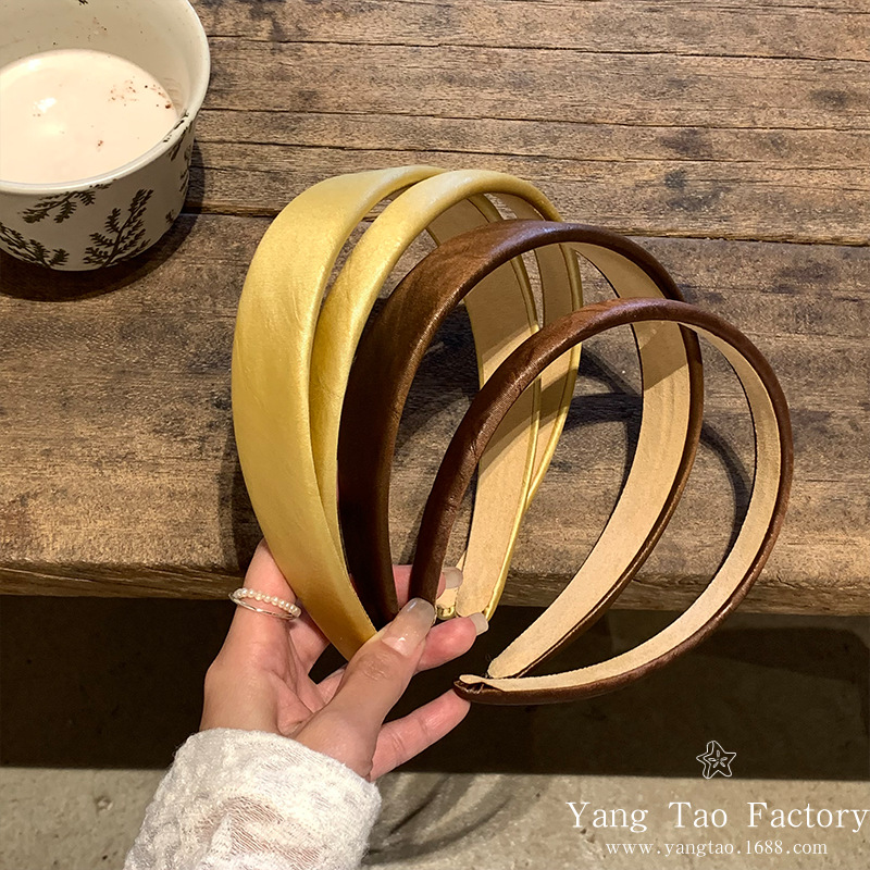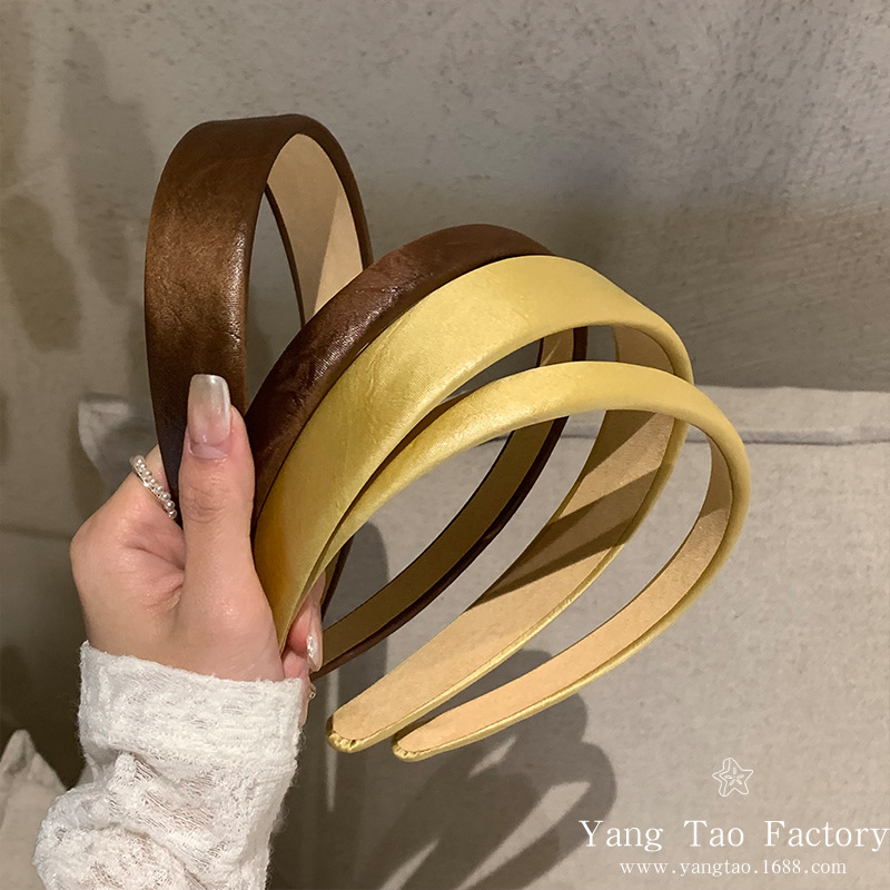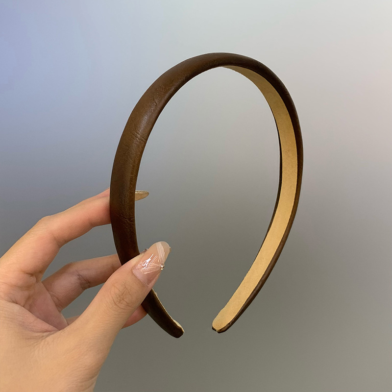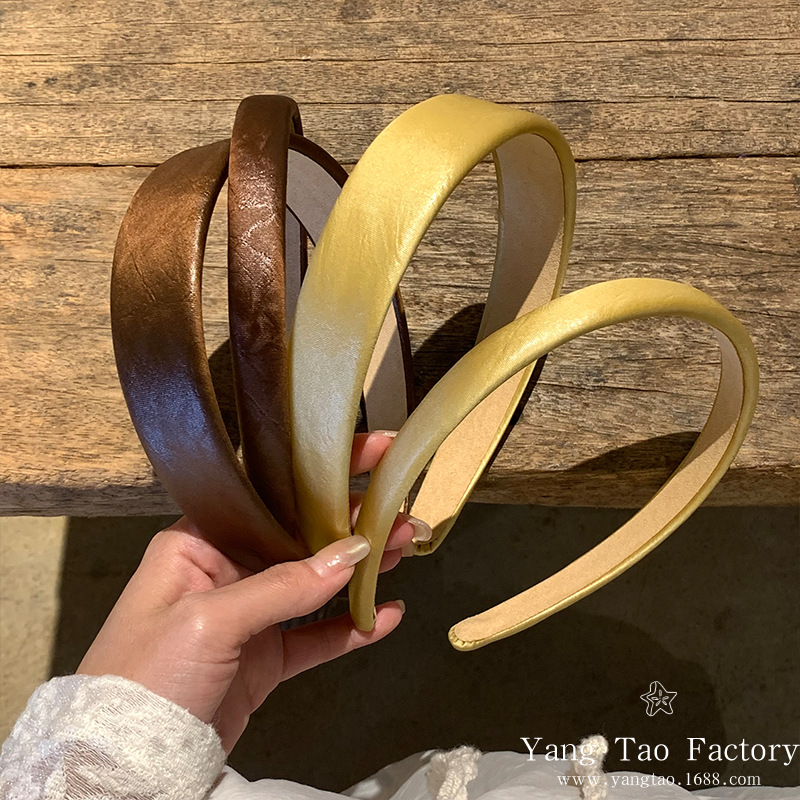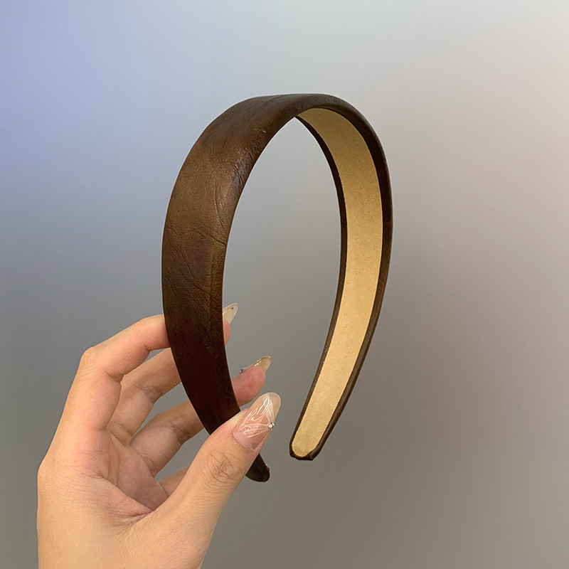레트로 올드 머니 스타일 고급 센스 가죽 와이드 페이스 하이 크랜얼 탑 아웃 재단 올 매치 패션 인터넷 연예인 새로운 머리띠스토어 가기