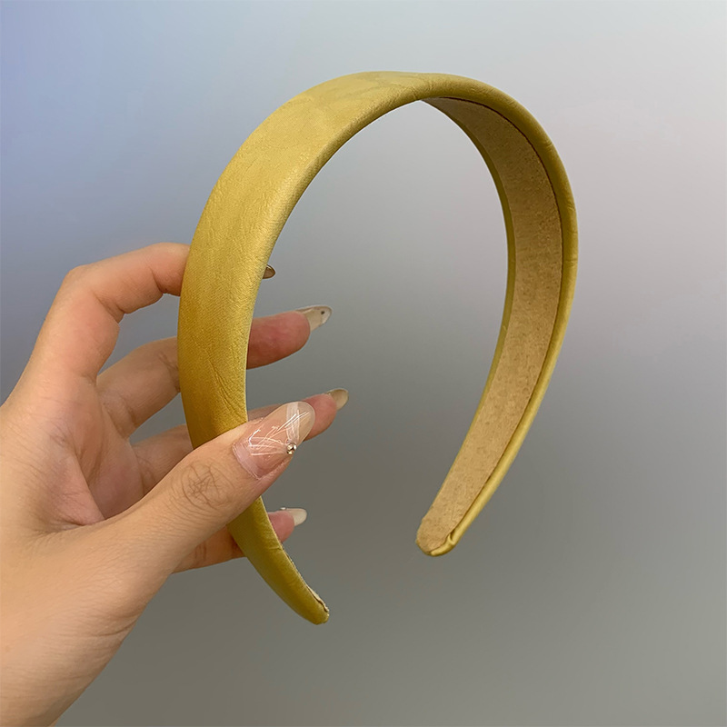 레트로 올드 머니 스타일 고급 센스 가죽 와이드 페이스 하이 크랜얼 탑 아웃 재단 올 매치 패션 인터넷 연예인 새로운 머리띠