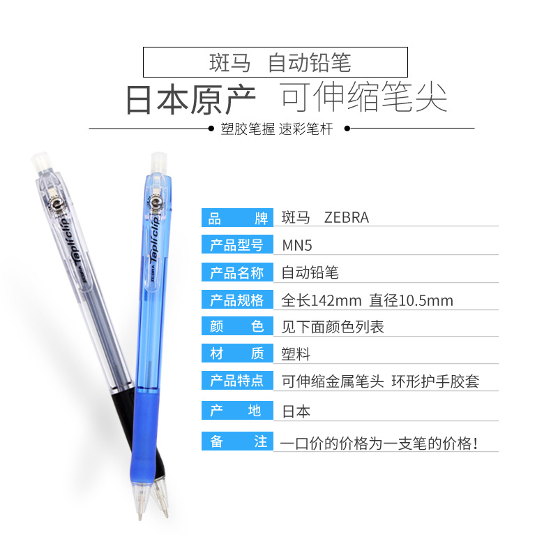 일본 ZEBRAZebra 기계 연필 0.5 액티브 연필 MN5 소프트 접착 펜 개폐식 펜 팁 리드를 깨기 쉽지 않음스토어 가기