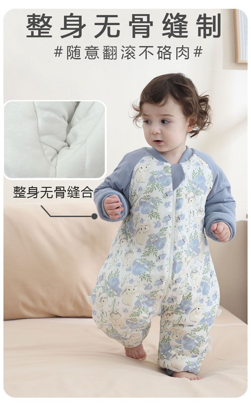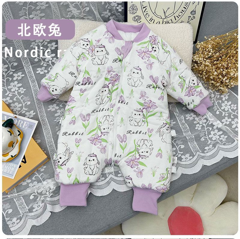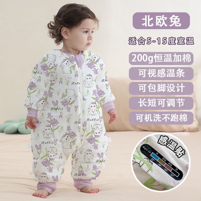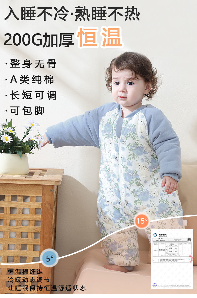 (A급 유아용 겨울 200g 두꺼운 누빔 수면조끼) 유아용 순면 항온 발싸개 일체형 옷, 발싸개가 있는 방한복