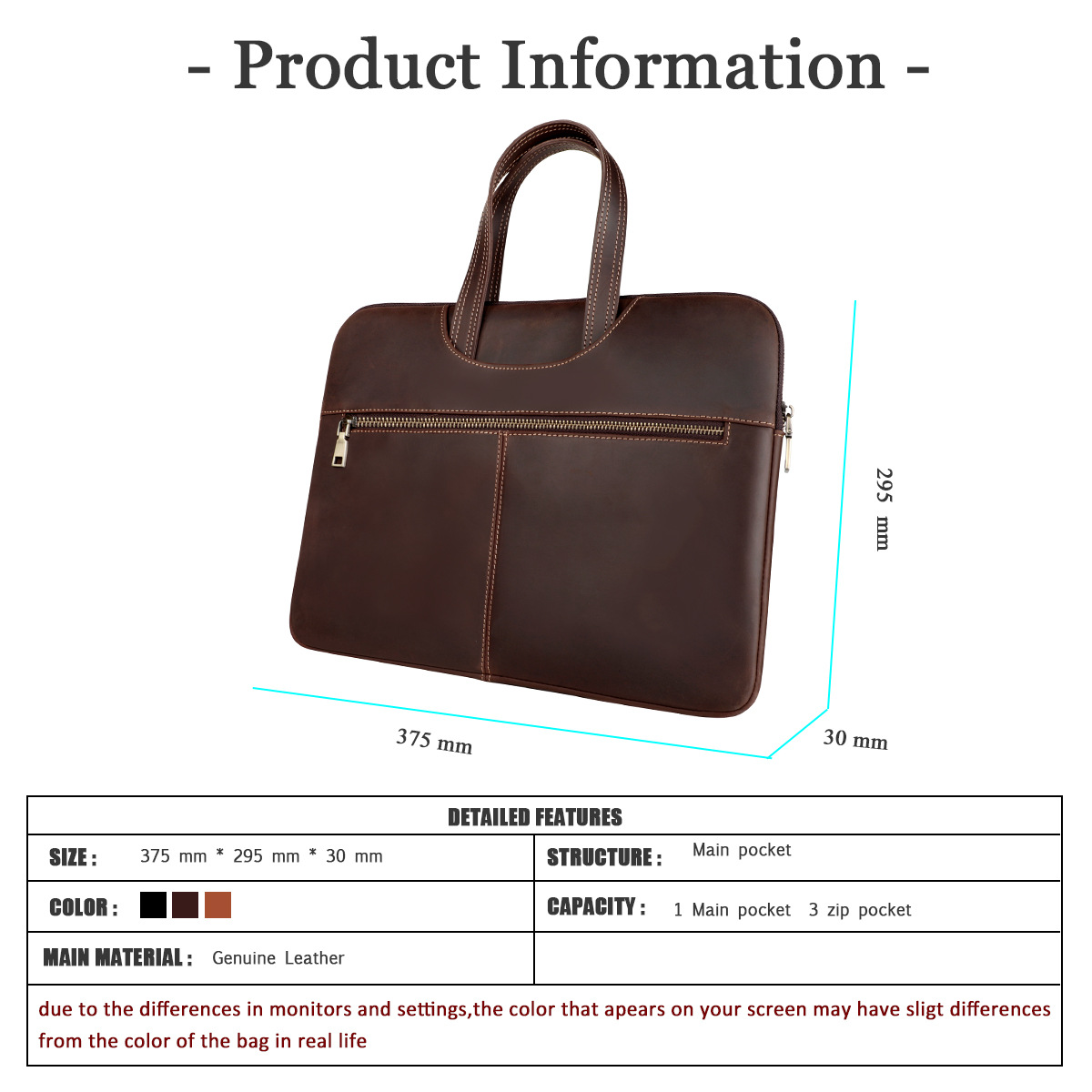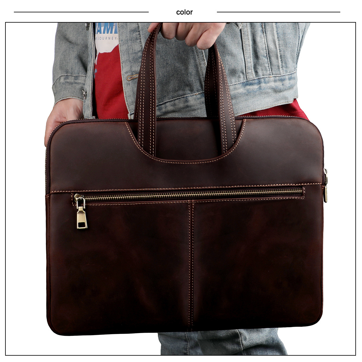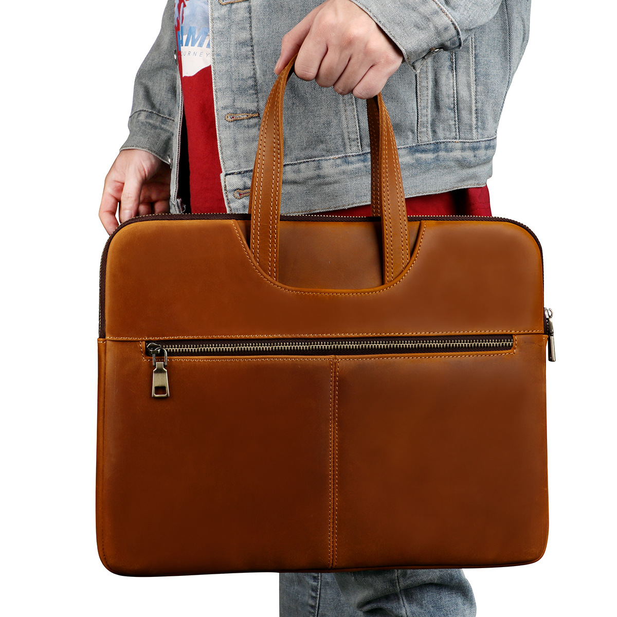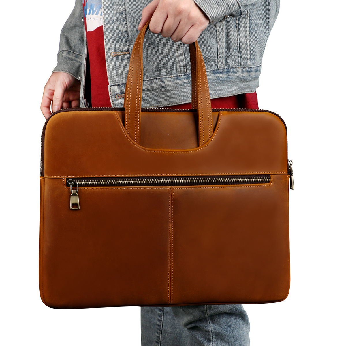 미친 말 가죽 노트북 케이스 맥북 Pro15 인치 지퍼 비즈니스 사무실 노트북 케이스스토어 가기
