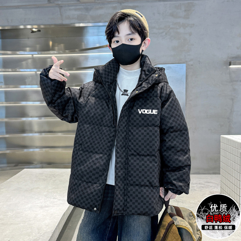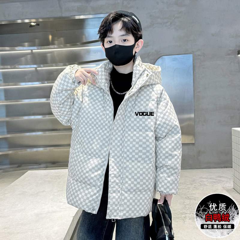 어린이 착용 소년 다운 재킷 겨울 2024 새로운 스타일 코트 큰 어린이 겨울 두꺼운 어린이 소년 화이트 덕 다운 패션스토어 가기