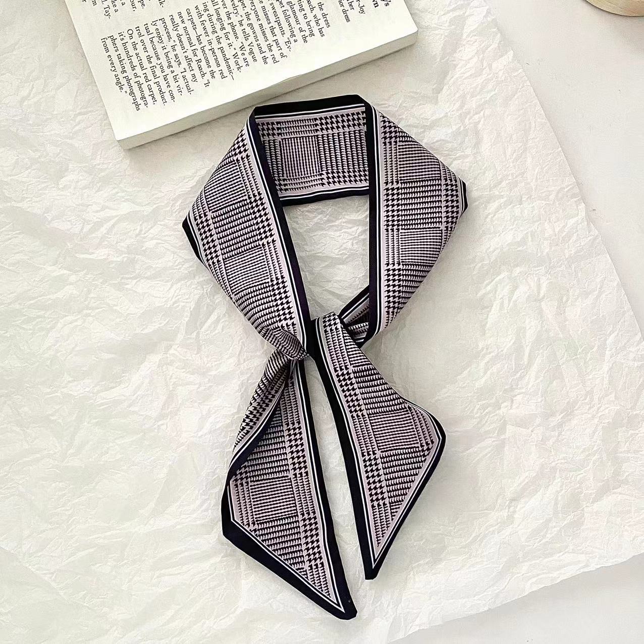 한국 작은 향기로운 스타일 흑백 실크 스카프 여성의 얇은 좁은 긴 스트립 높은 색상 가치 머리 벨트 넥타이 가방 리본 봄과 여름 올 매치 스카프