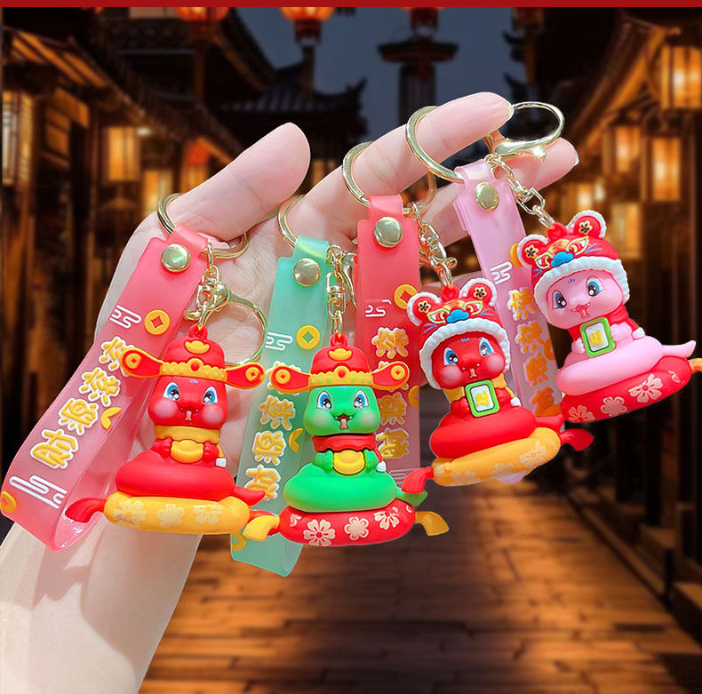 만화 국가 조수 돈 롤링 새해 인형 키 체인 작은 펜던트 귀여운 스쿨 백 키 체인 뱀 작은 선물