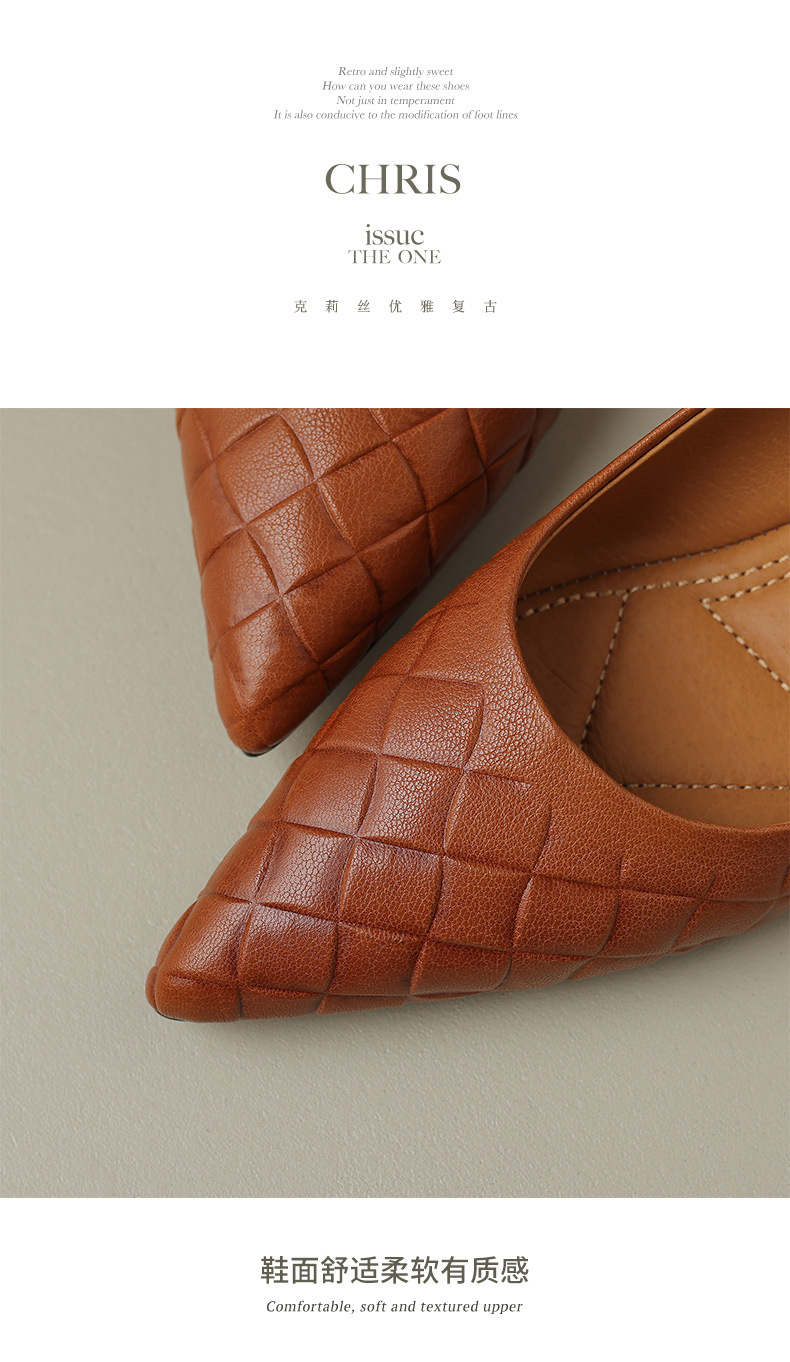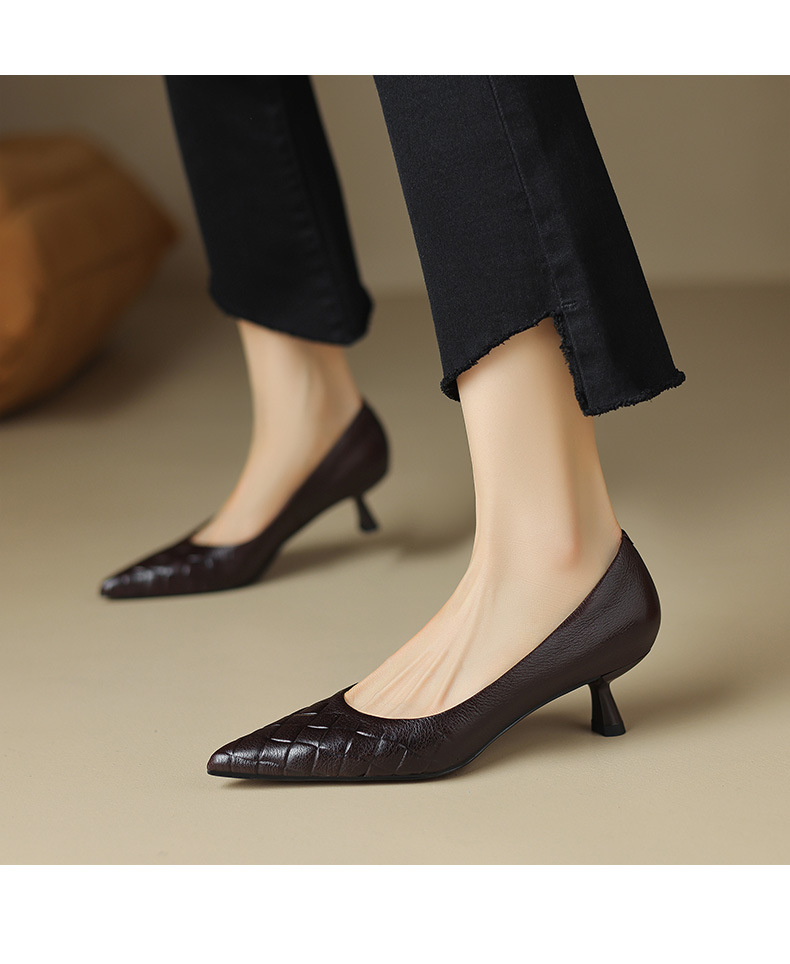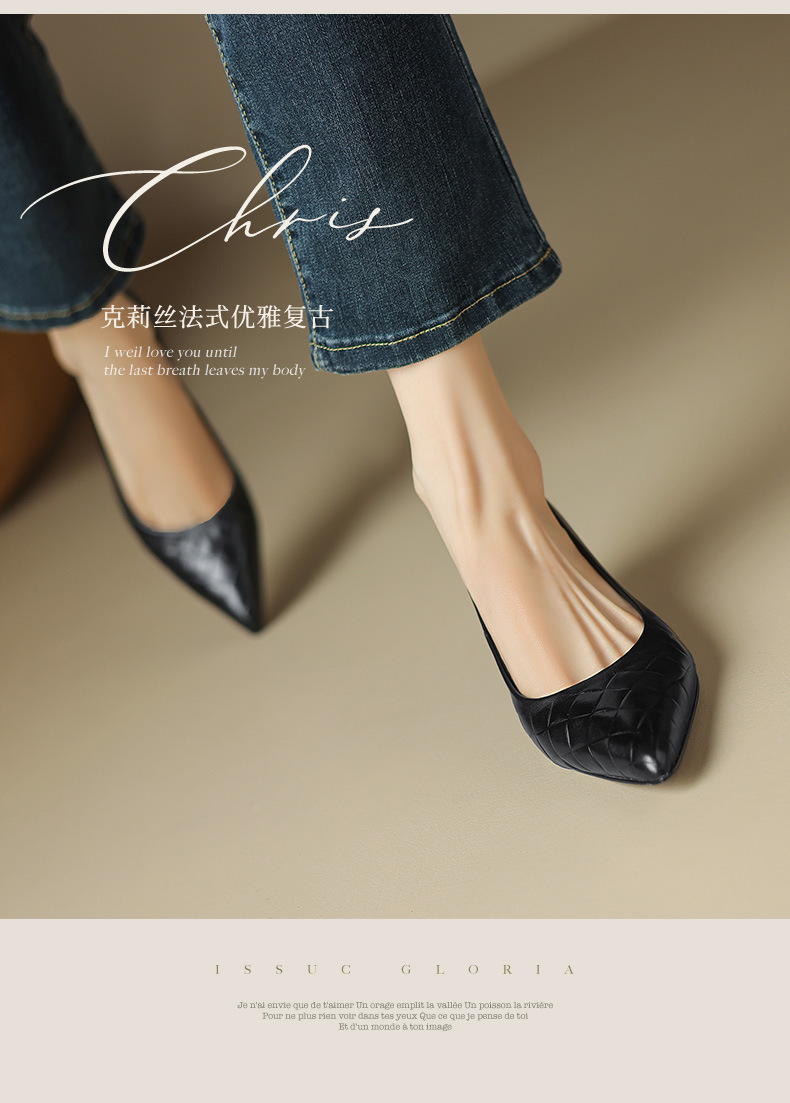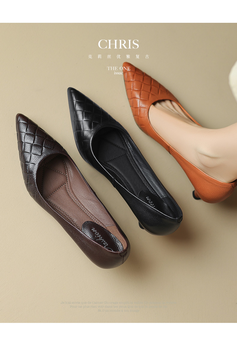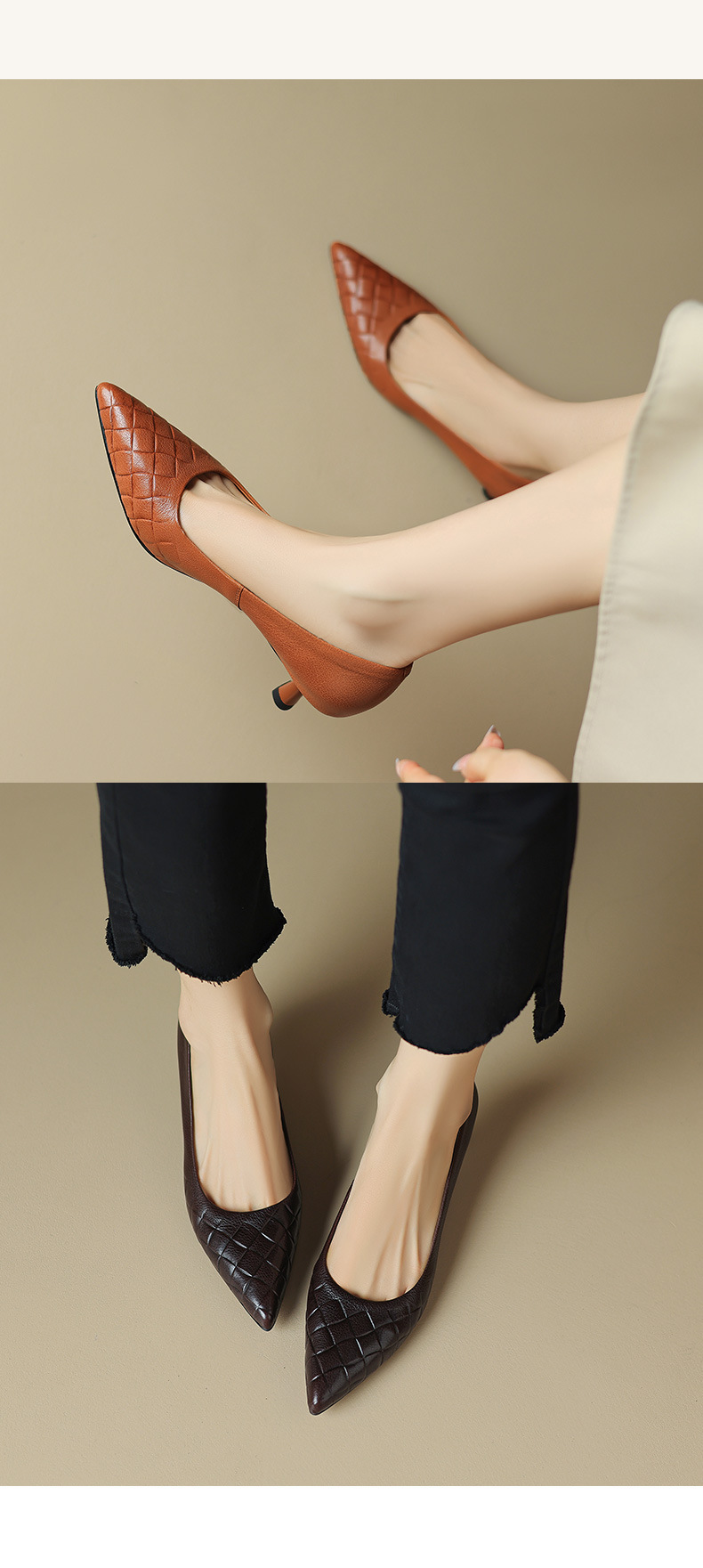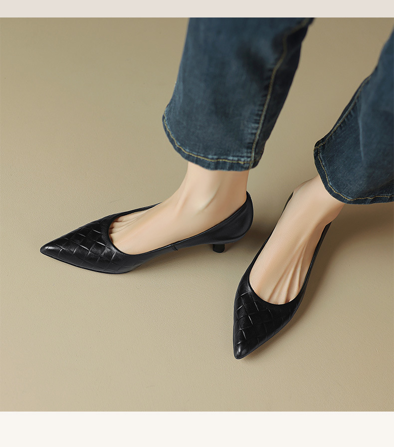 양가죽 짠 뾰족한 신발 여성의 봄과 가을 2024 얇은 뒤꿈치 얕은 입 기질 하이힐 소프트 단독 작업 신발스토어 가기