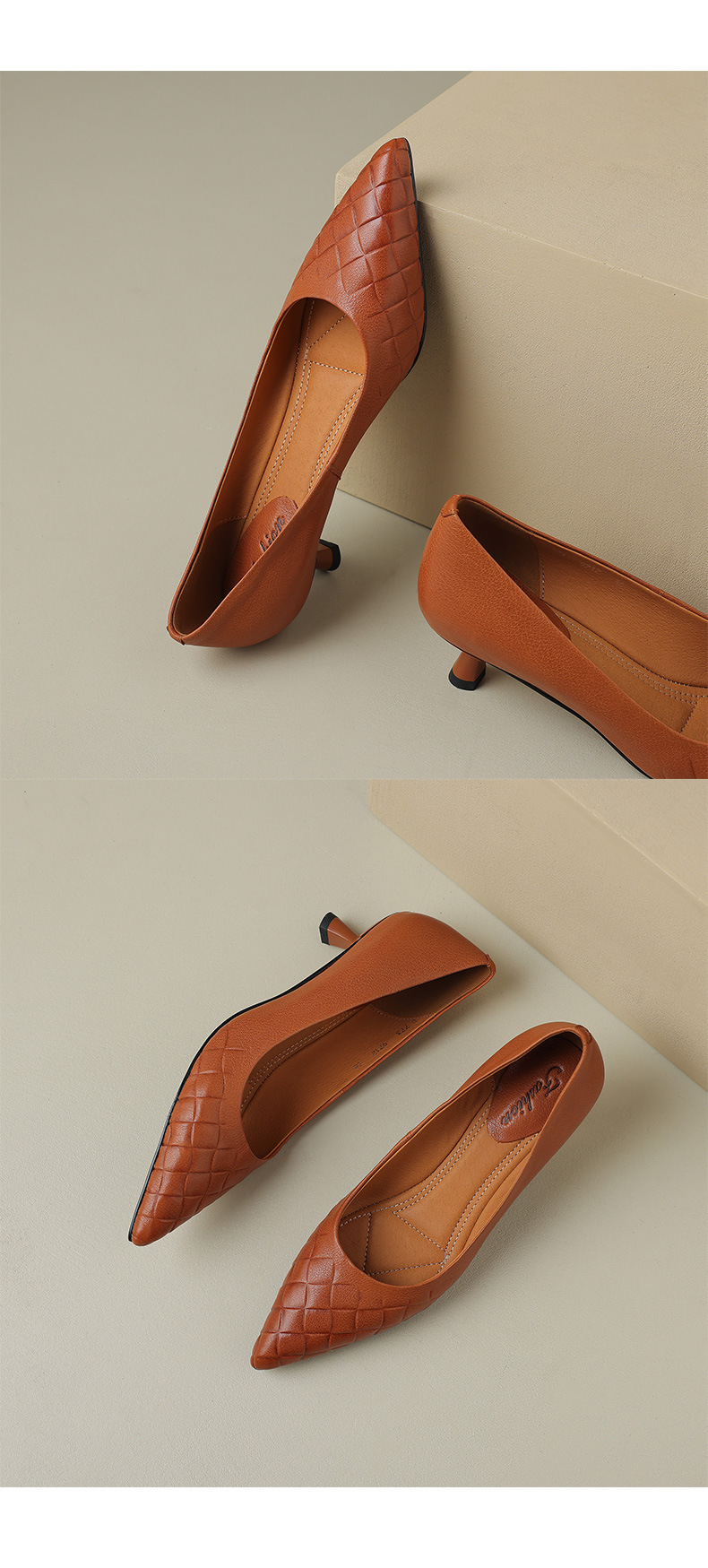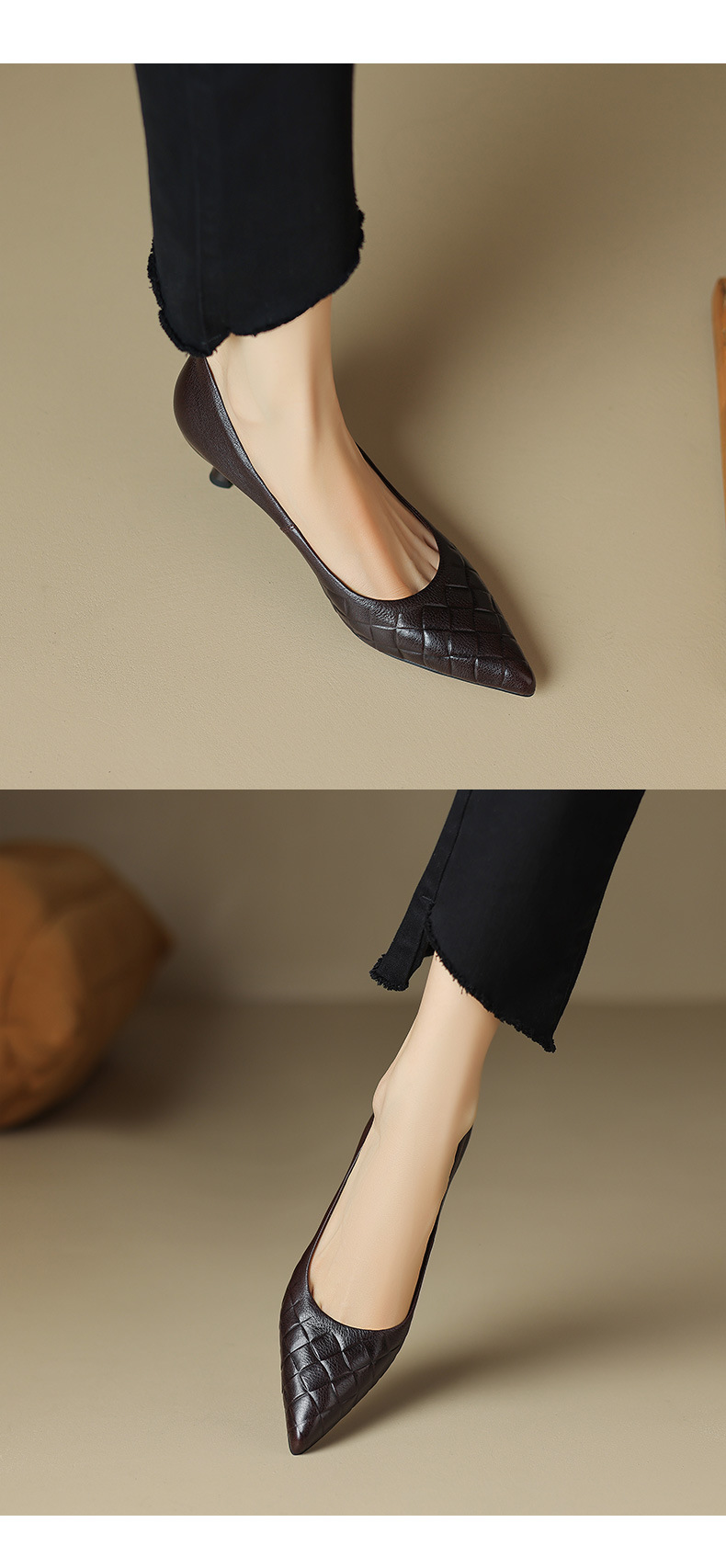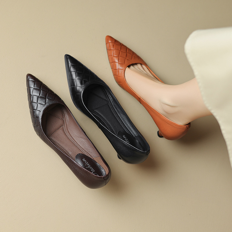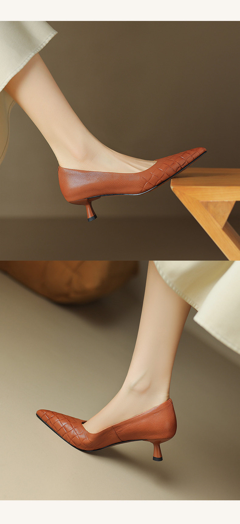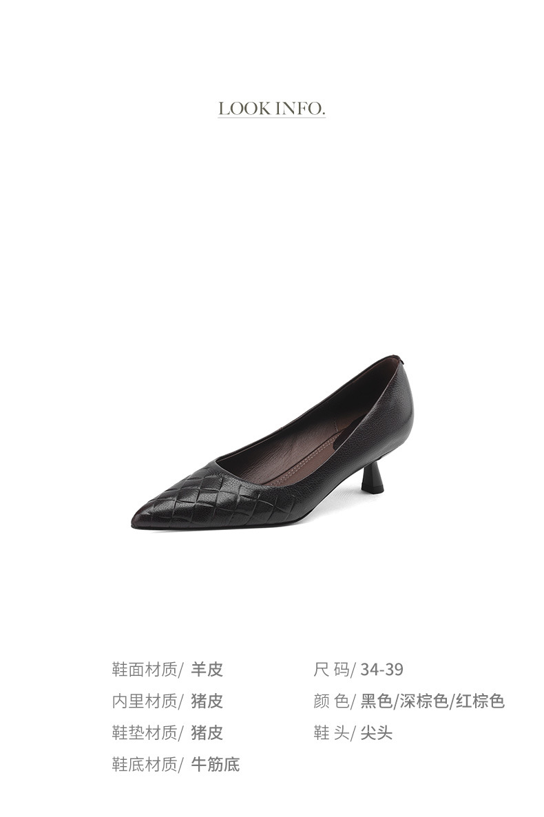 양가죽 짠 뾰족한 신발 여성의 봄과 가을 2024 얇은 뒤꿈치 얕은 입 기질 하이힐 소프트 단독 작업 신발스토어 가기