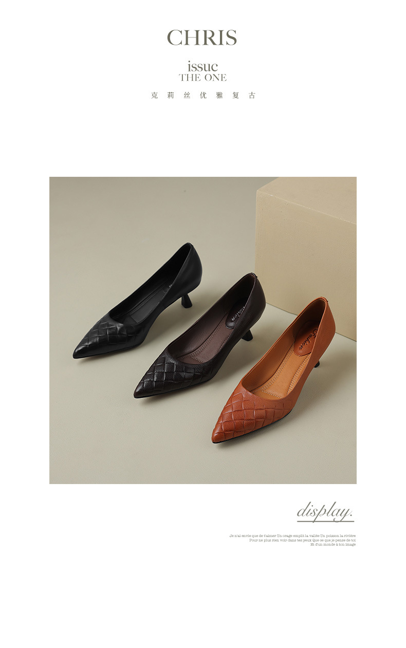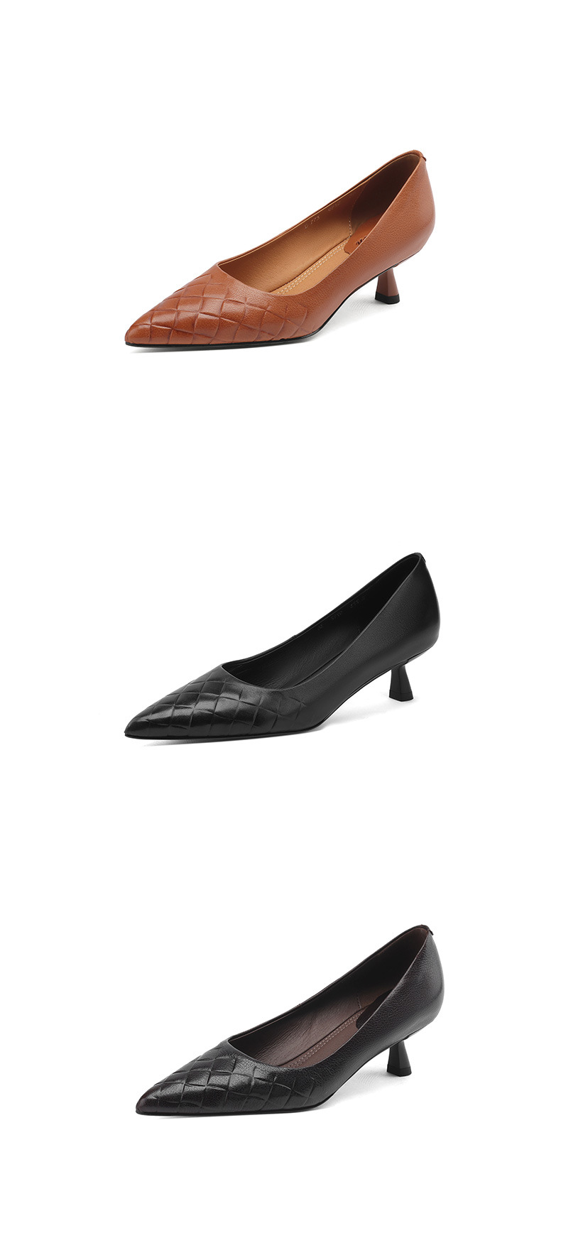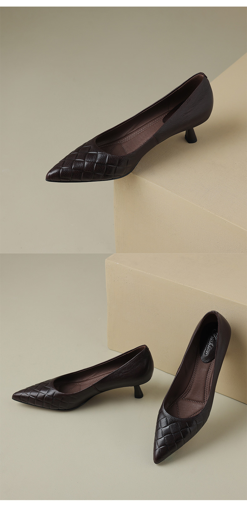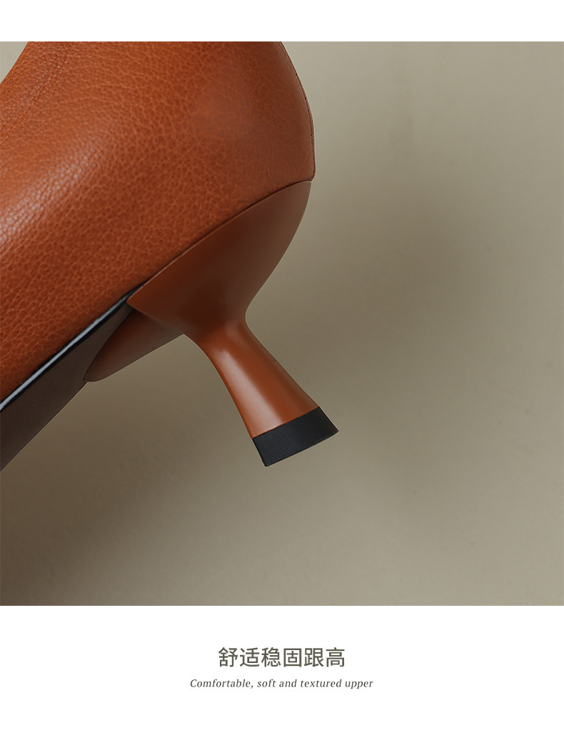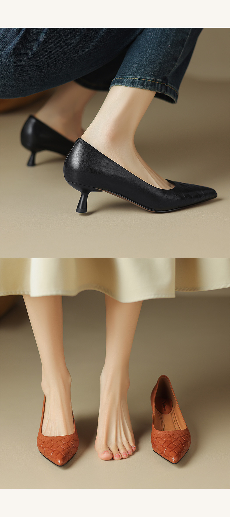 양가죽 짠 뾰족한 신발 여성의 봄과 가을 2024 얇은 뒤꿈치 얕은 입 기질 하이힐 소프트 단독 작업 신발스토어 가기