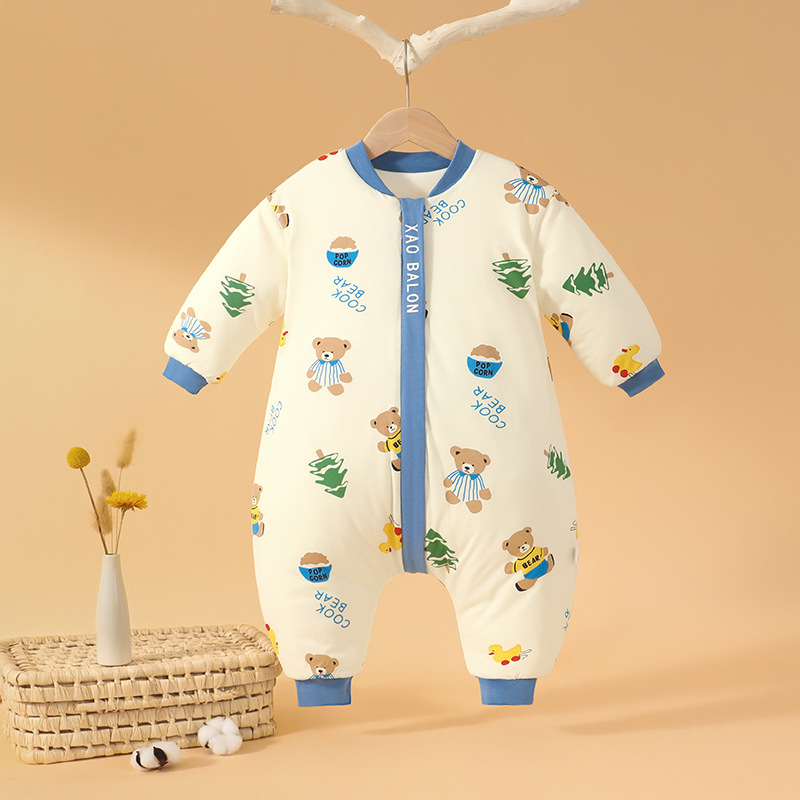 아기 잠자는 가방 가을과 겨울 일정한 온도 따뜻한 두꺼운 잠옷 신생아 소년 소녀를위한 킥 방지 세트스토어 가기