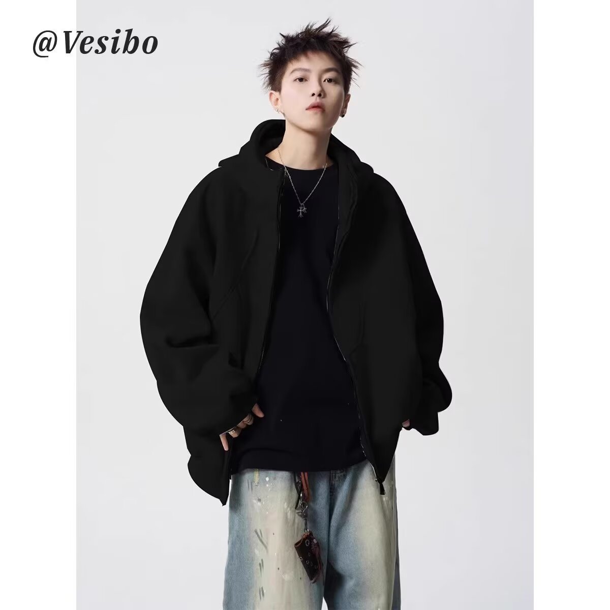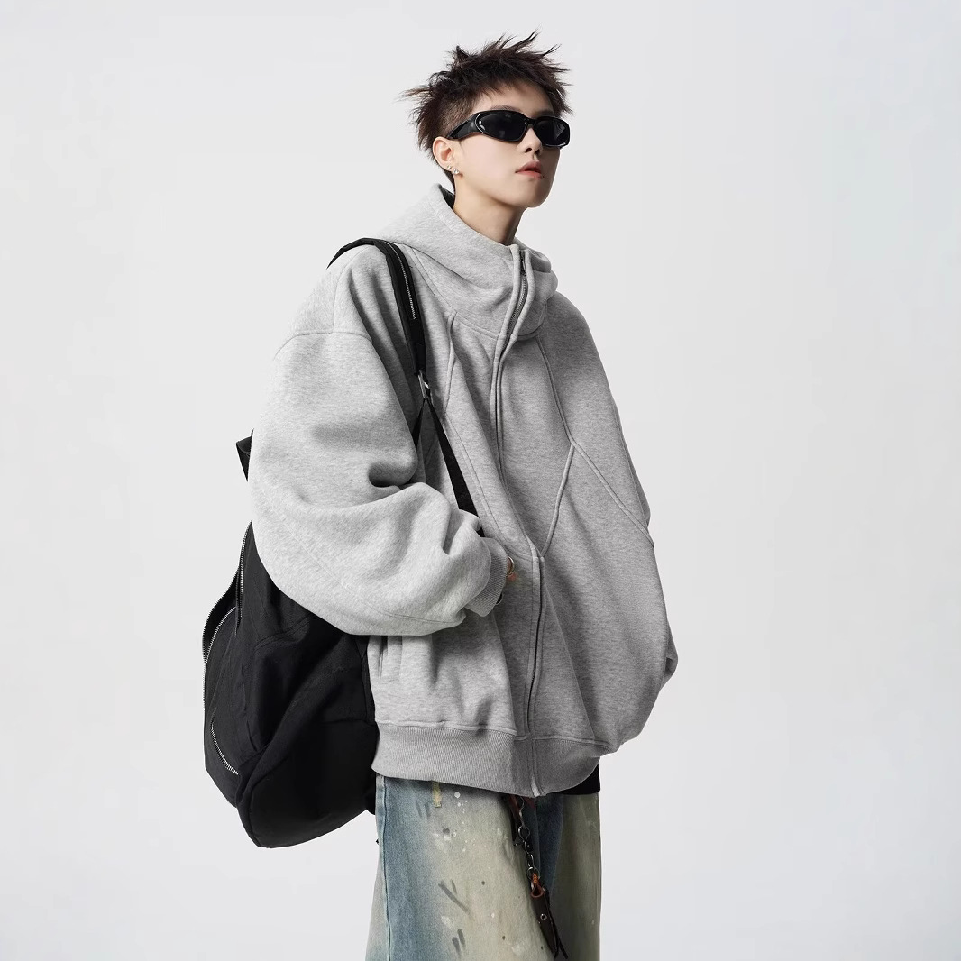 미국식 무거운 해체 후드 재킷 남성 겨울 패션 브랜드 디자인 센스 스티칭 스웨터 하이 스트리트 플루튼 핸섬 커플 후디