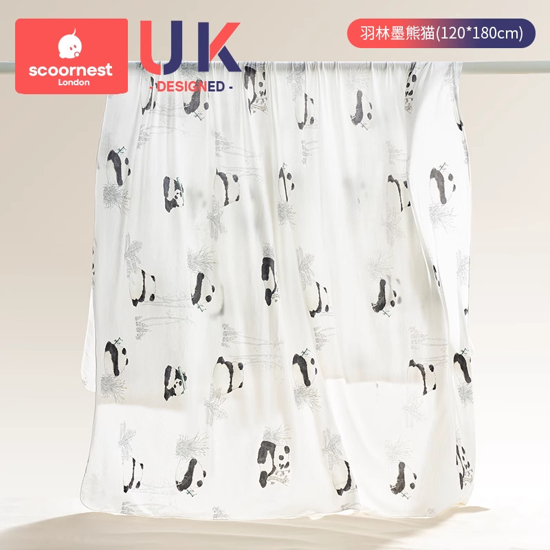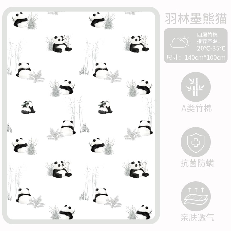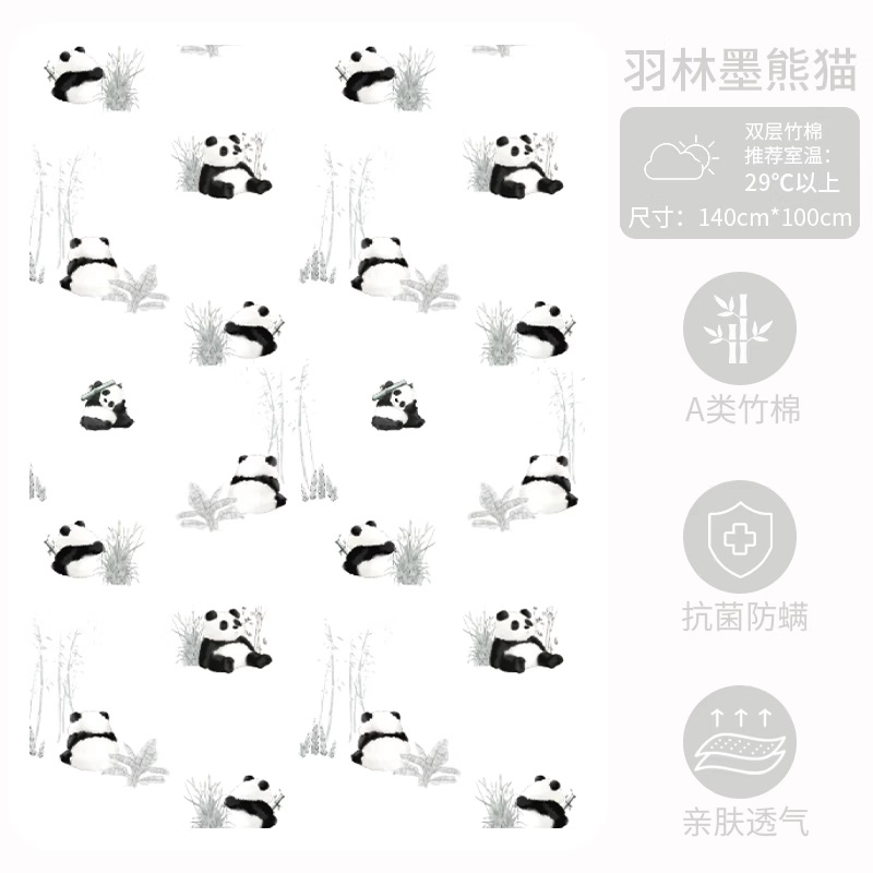 • [더블 레이어 대나무 면 거즈, 권장 29℃위] 유린 잉크 팬더 (145*120cm)