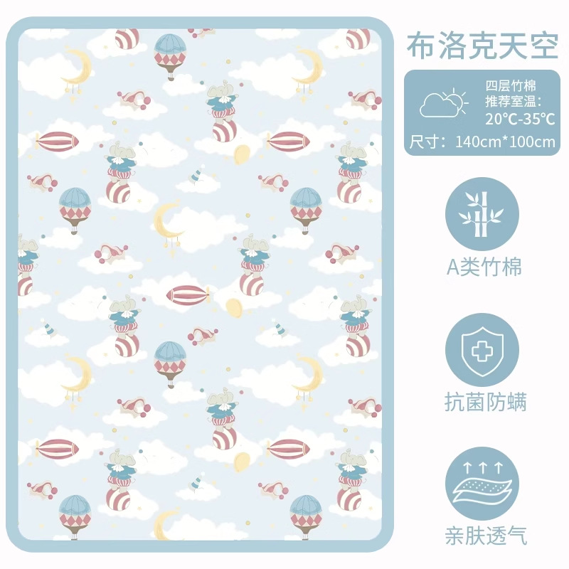 • [대나무 면 거즈 4겹, 20-35 권장℃】블록 스카이(140*100cm)